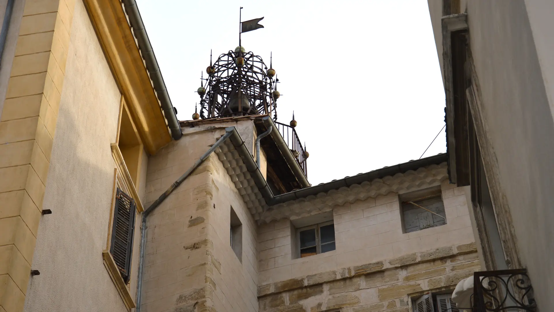 Avec des pierres extraites des carrières de Caromb, le maçon edifie un bâtiment desservi par un escalier à vis installé dans une tourelle. Celle-ci est surélevée en 1572 pour recevoir un beau campanile en fer forgé commandé à Nicolas Calis, de type cosmologique.