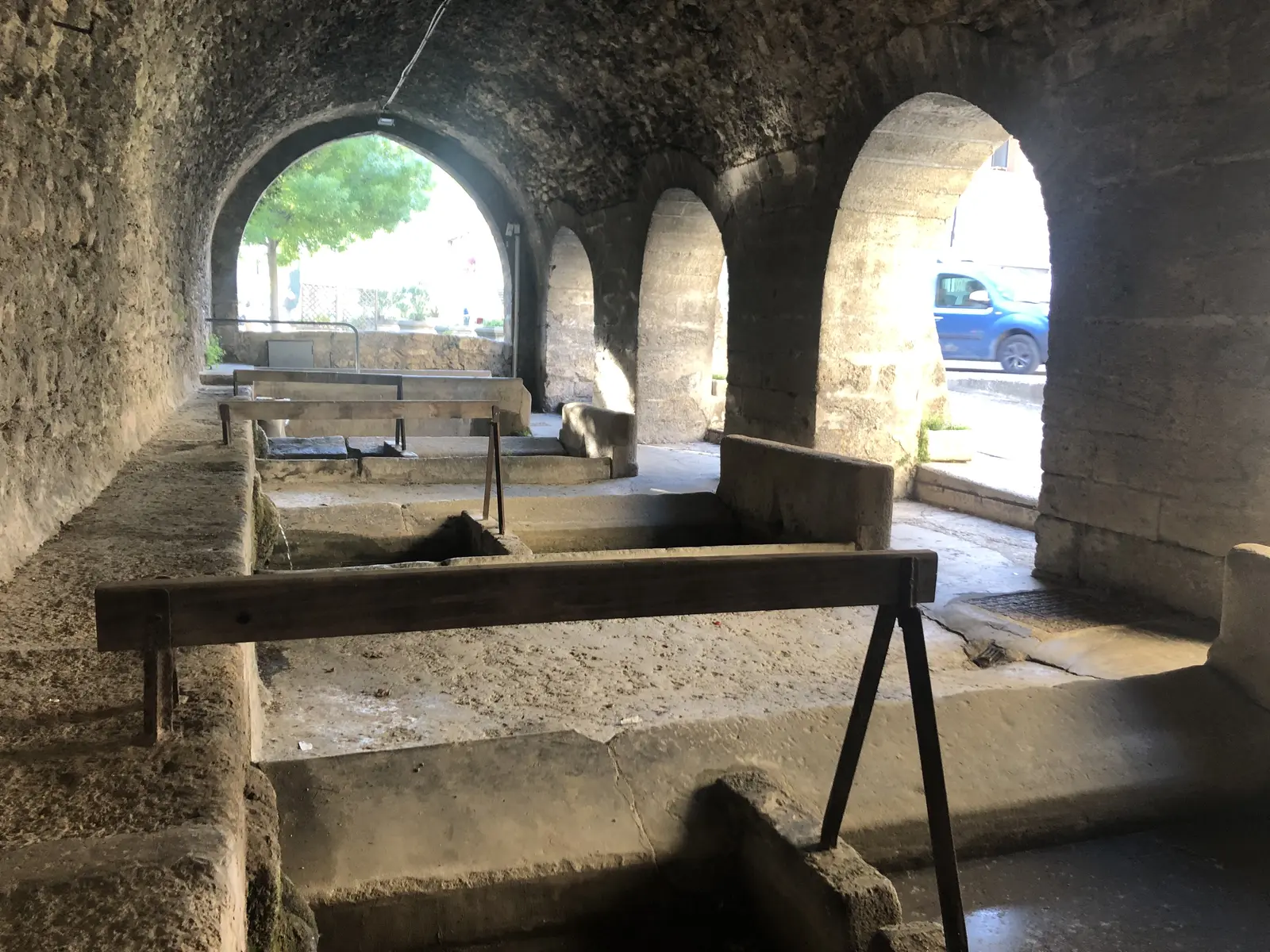 Les arches soutiennent un toit en pierres plates qui abrite quatre double bassins, alimentés par les eaux de la Bonne Fontaine.