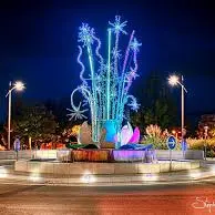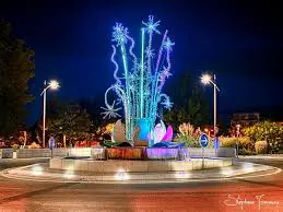 La sculpture est une œuvre originale, réalisée par la société Blachère d'Apt, elle réunit deux éléments qui fondent l'identité de Monteux : le feu et l'eau. Le feu pour la pyrotechnie avec une illumination à faible consommation d'énergie qui changent de couleurs, rappelant les effets pyrotechniques et l'eau pour Saint Gens, notre « faiseur de pluie », Saint Patron de la ville.