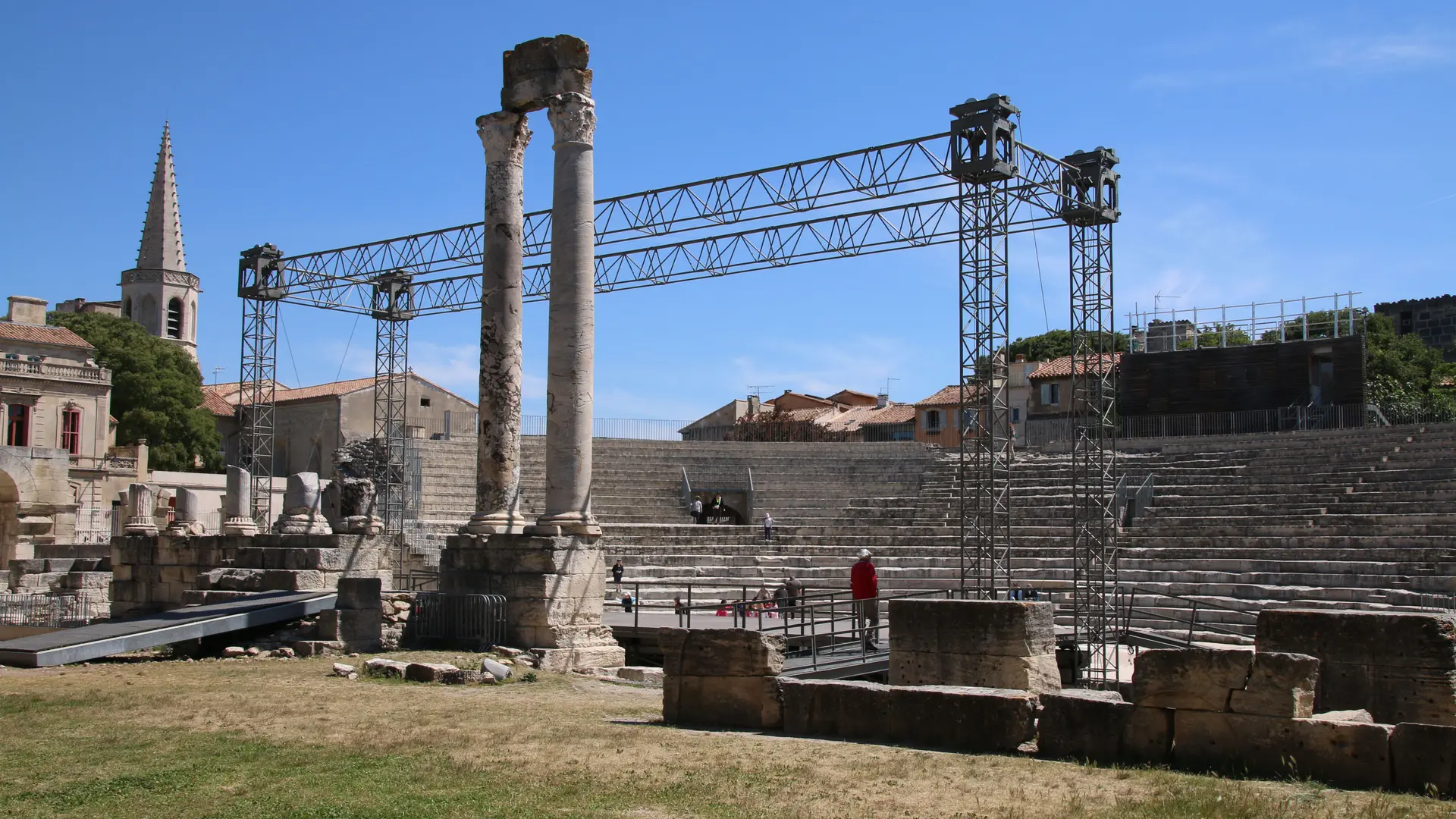 Construit à la fin du 1er siècle avant J.C, le Théâtre Antique d'Arles a subi les vicissitudes du temps. Ouverts aujourd'hui à la visite les précieux vestiges retrouvent ponctuellement leur vocation initiale. C'est dans ce cadre historique et romantique, sous le ciel et les étoiles de Provence, que de nombreux spectateurs sont accueillis l'été.