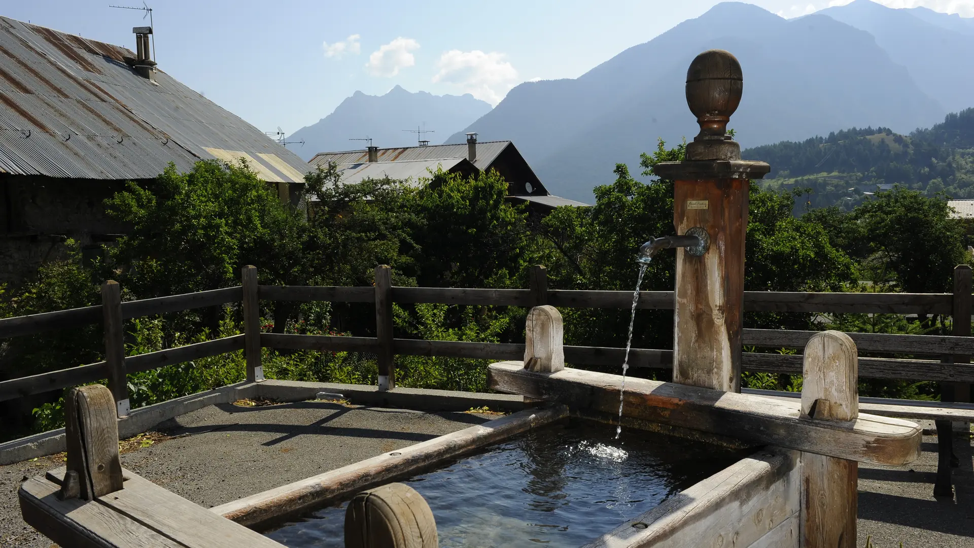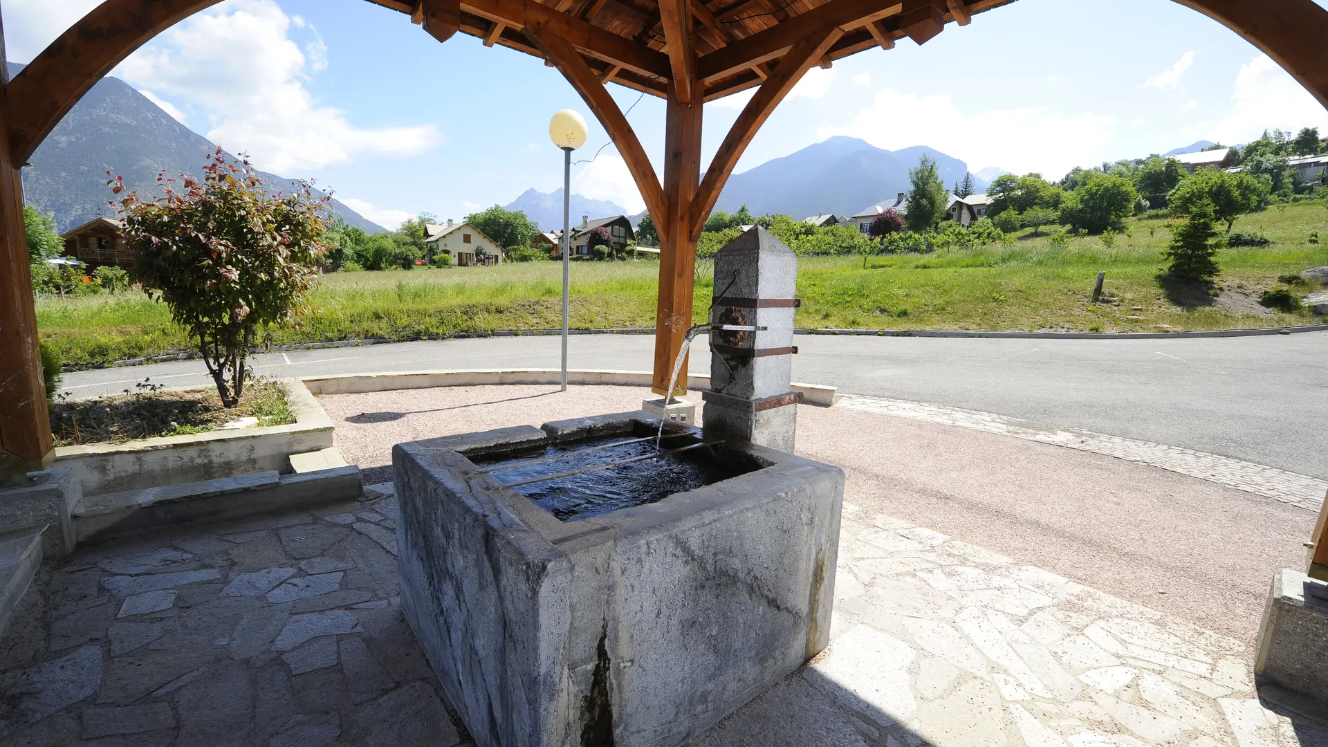 Des réalisations modernes sur le thème des fontaines, l’une vers l’école en pierre, couverte d’un toit en bardeaux de bois, une autre réalisée en bois charpenté dans le style de celles de Saint-Véran, et d’autre projets à venir.