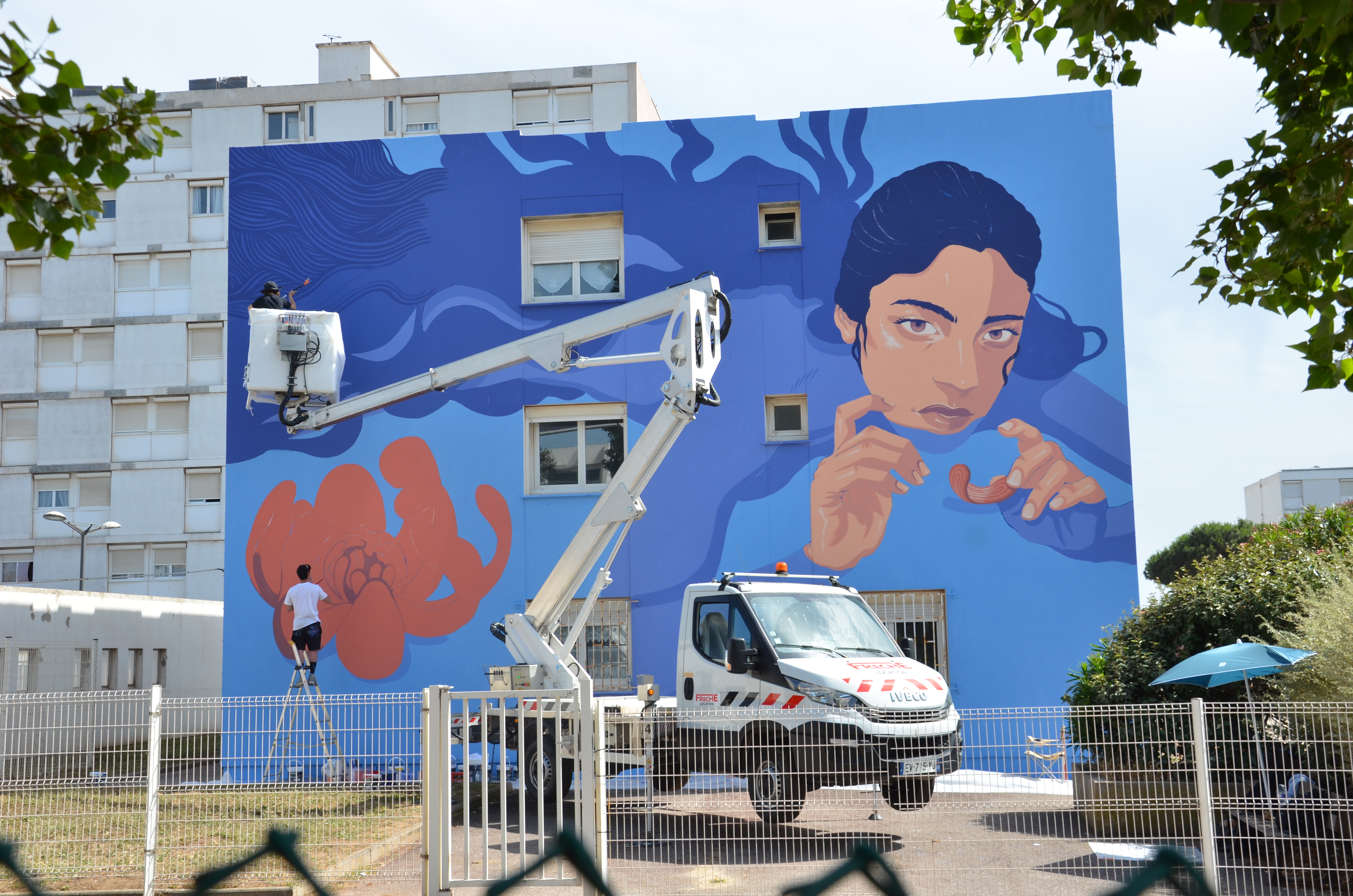 Les pieds dans l’eau, à quelques encablures de Marseille, vous pourrez parcourir une ville généreuse et accueillante, parsemée d’une rare collection de fresques. Entre les nacelles et échafaudages installés, vous découvrirez les esquisses, les premières couleurs mélangées à même le sol et la peinture s’étaler sur les murs