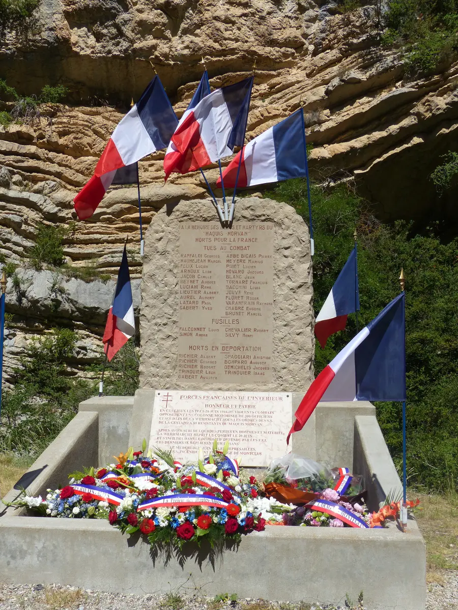 Autrefois situé dans les gorges de la Blème, le monument aux morts se trouve aujourd’hui à l’entrée du village. Cette stèle rend hommage aux résistants du maquis Morvan,disparus lors des combats de la libération de la région, en 1944.