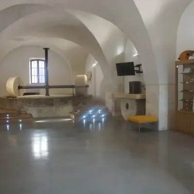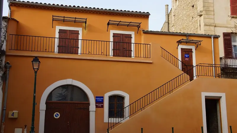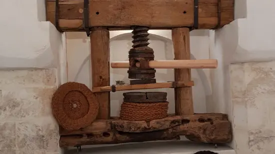 Un moulin oléicole restauré, au cœur du village provençal de La Fare les Oliviers.