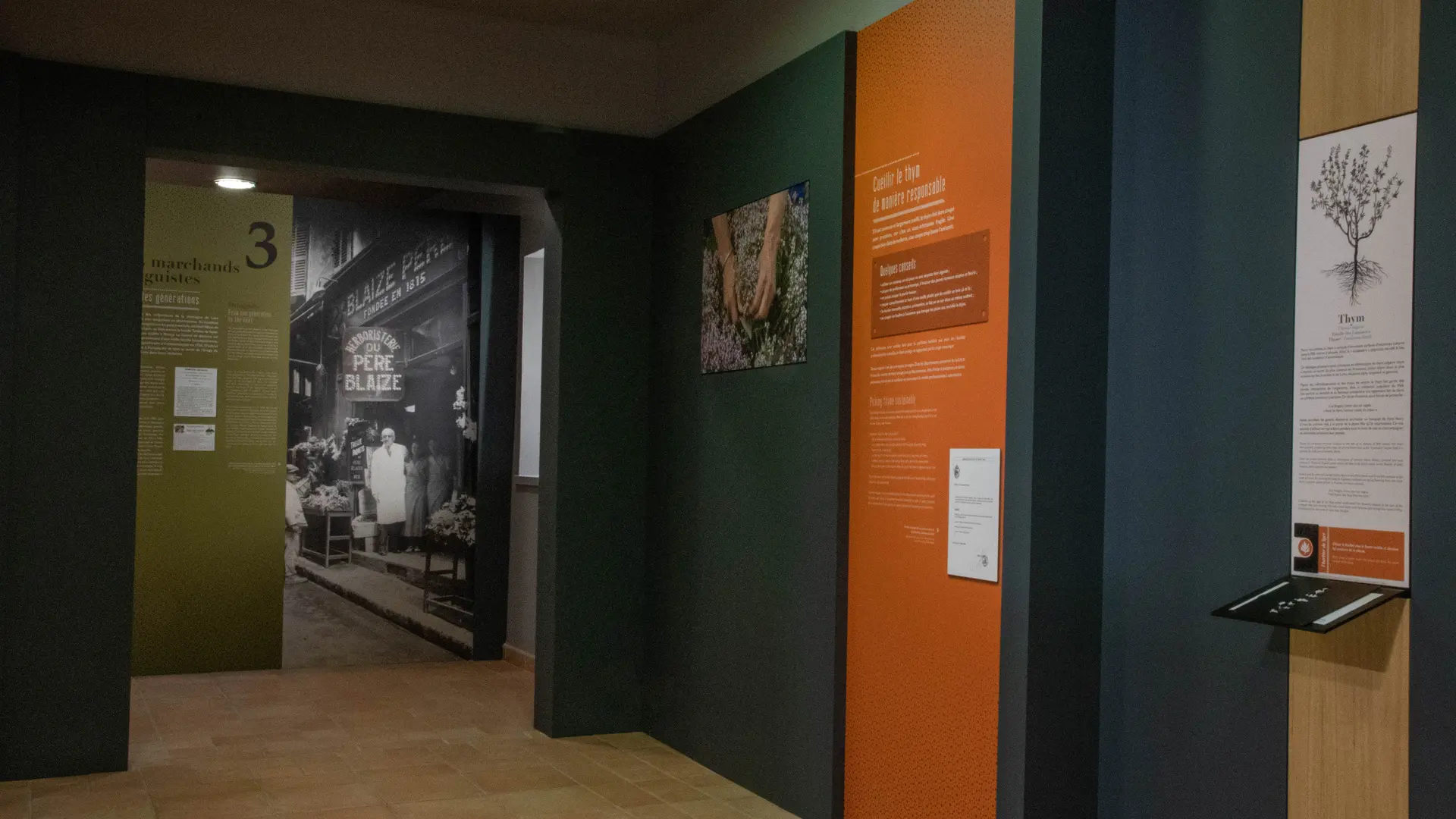 Le parcours permanent vous entraine sur les chemins des herboristes, à la découverte de la biodiversité locale, des distilleries de lavande et d’alcool, des fabricants de cosmétiques et de parfums à travers 7 espaces d’exposition.