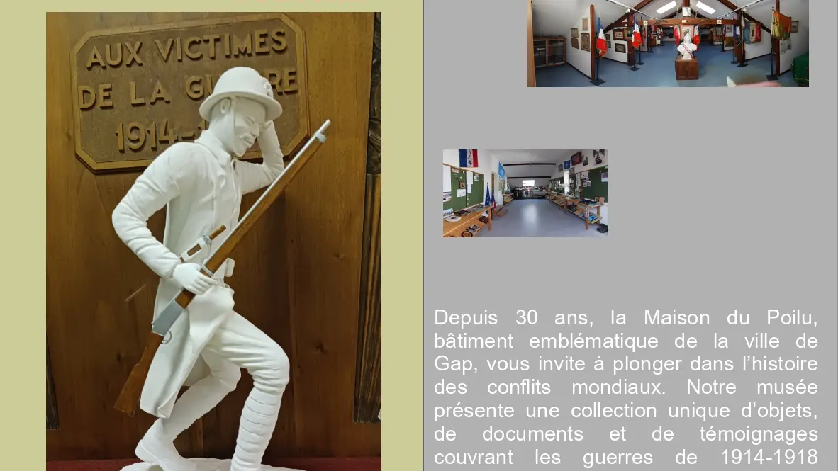 La Maison du Poilu est bien plus qu’un simple édifice ; elle incarne la mémoire, le courage et le sacrifice de ceux qui ont servi leur pays. Elle propose des expositions temporaires et organise des visites du musée du souvenir sur demande.