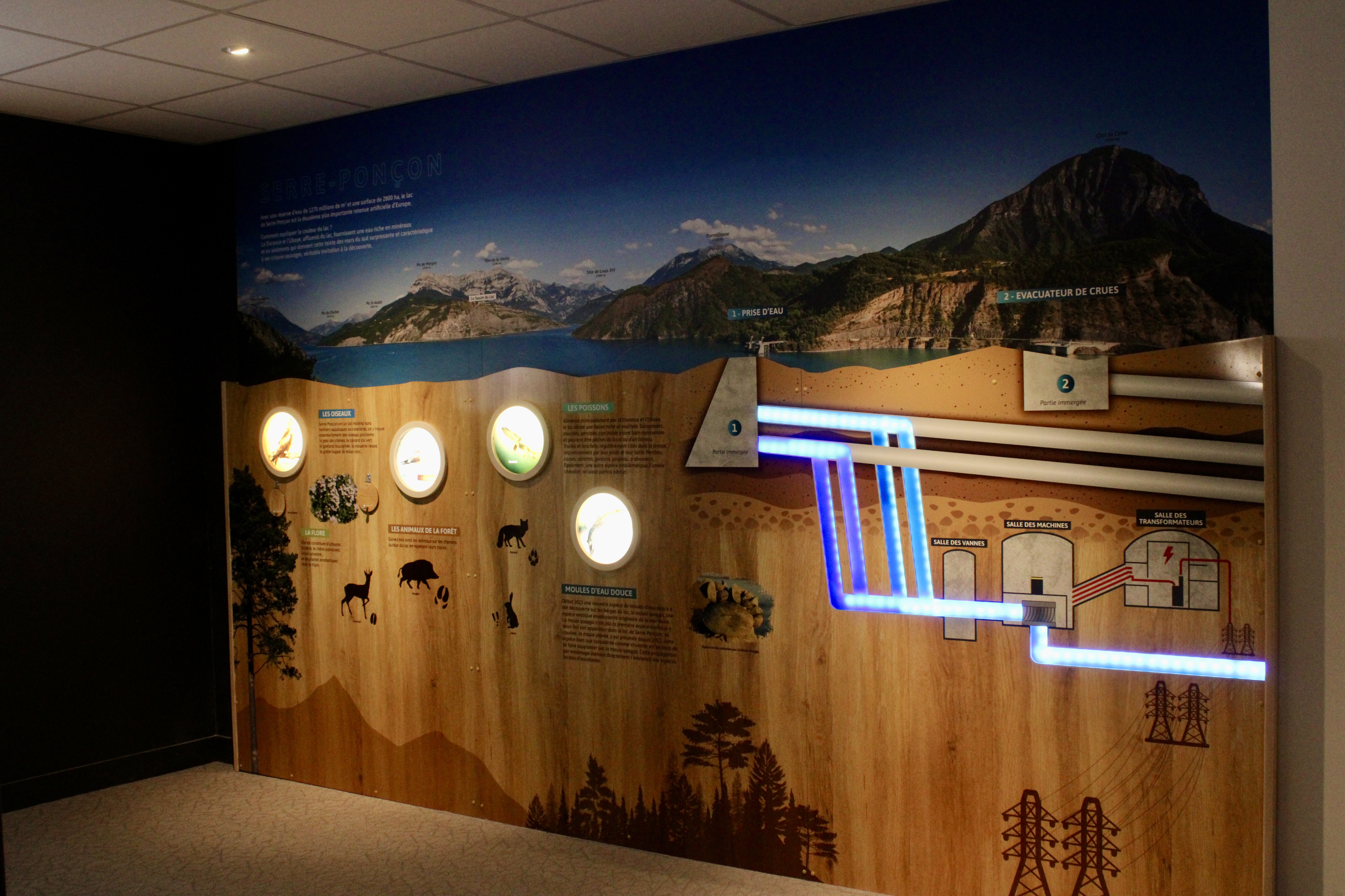 Le Muséoscope du Lac domine le lac et le barrage de Serre-Ponçon, la plus grande retenue artificielle d’Europe.