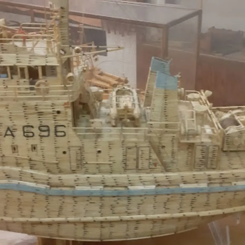 Visite commentée du musée. Maquettes de bateaux, du village de Mons et autres objets fabriqués uniquement en allumettes.