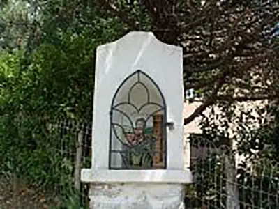 Situé en bordure de la route de La Bégude, en face de la route du cimetière, c'est un pilier de pierres apparentes, assemblées au mortier de chaux, surmonté d'un entablement de pierre de taille sur lequel repose une niche ogivale, voûtée intérieurement et fermée par une grille de fer ouvragée. Une croix de fer forgé termine l'édifice.