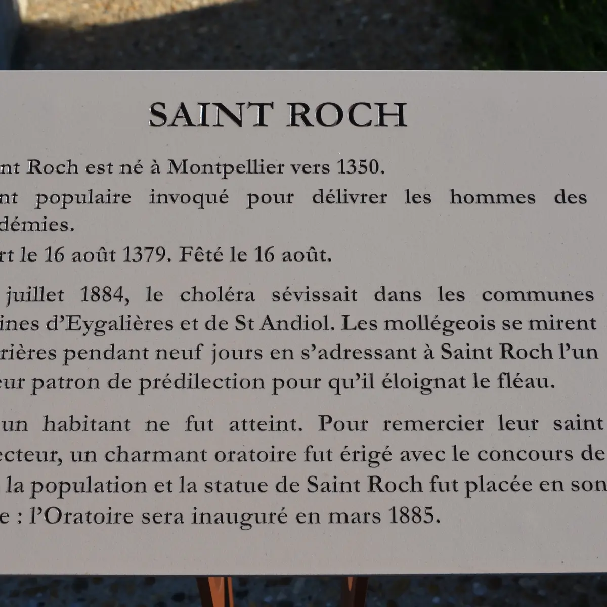 L'oratoire de Saint Roch a été érigé en 1884 aux frais de la population, en action de grâce pour la protection du village lors de l'épidémie de choléra de la même année.