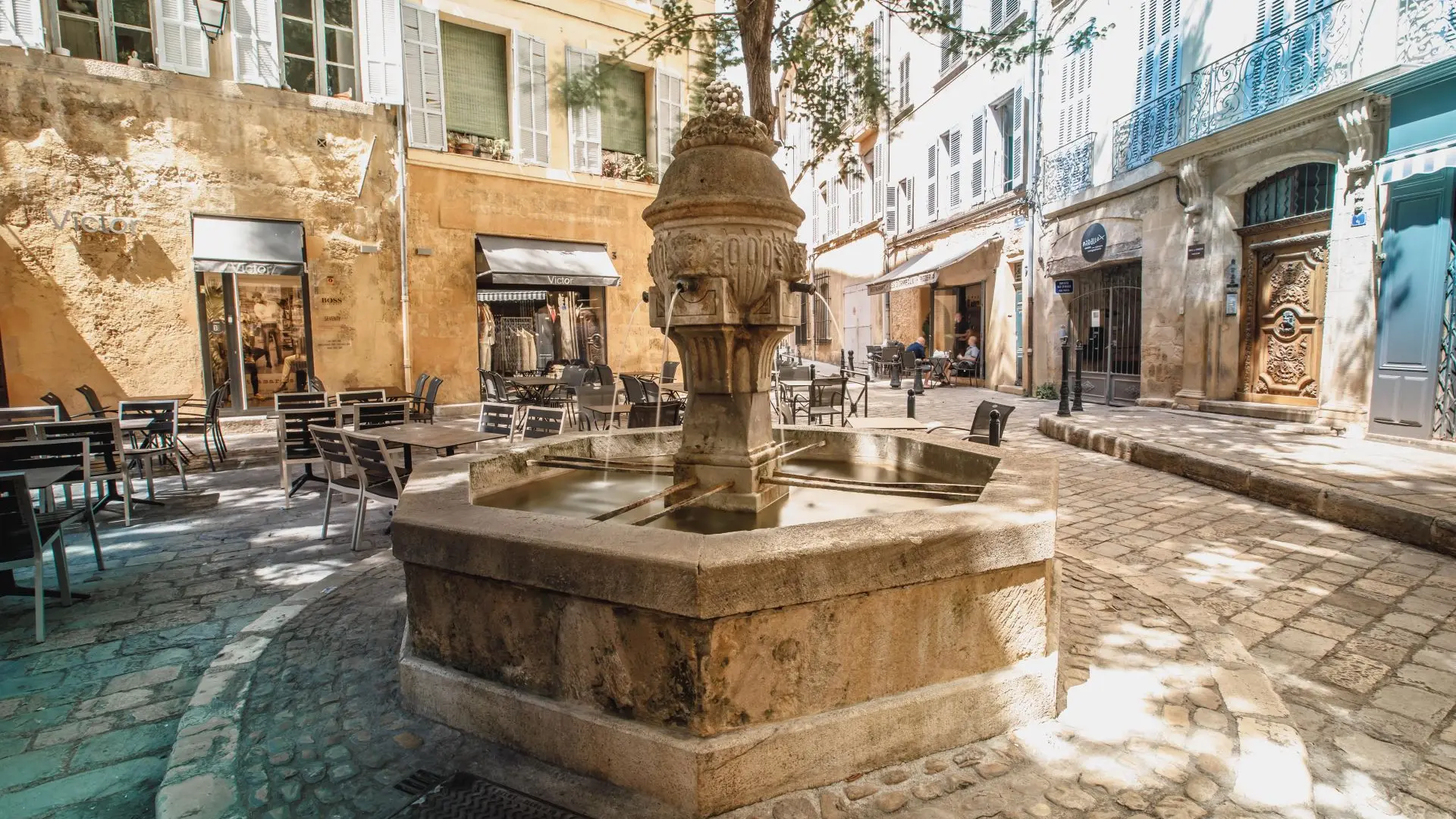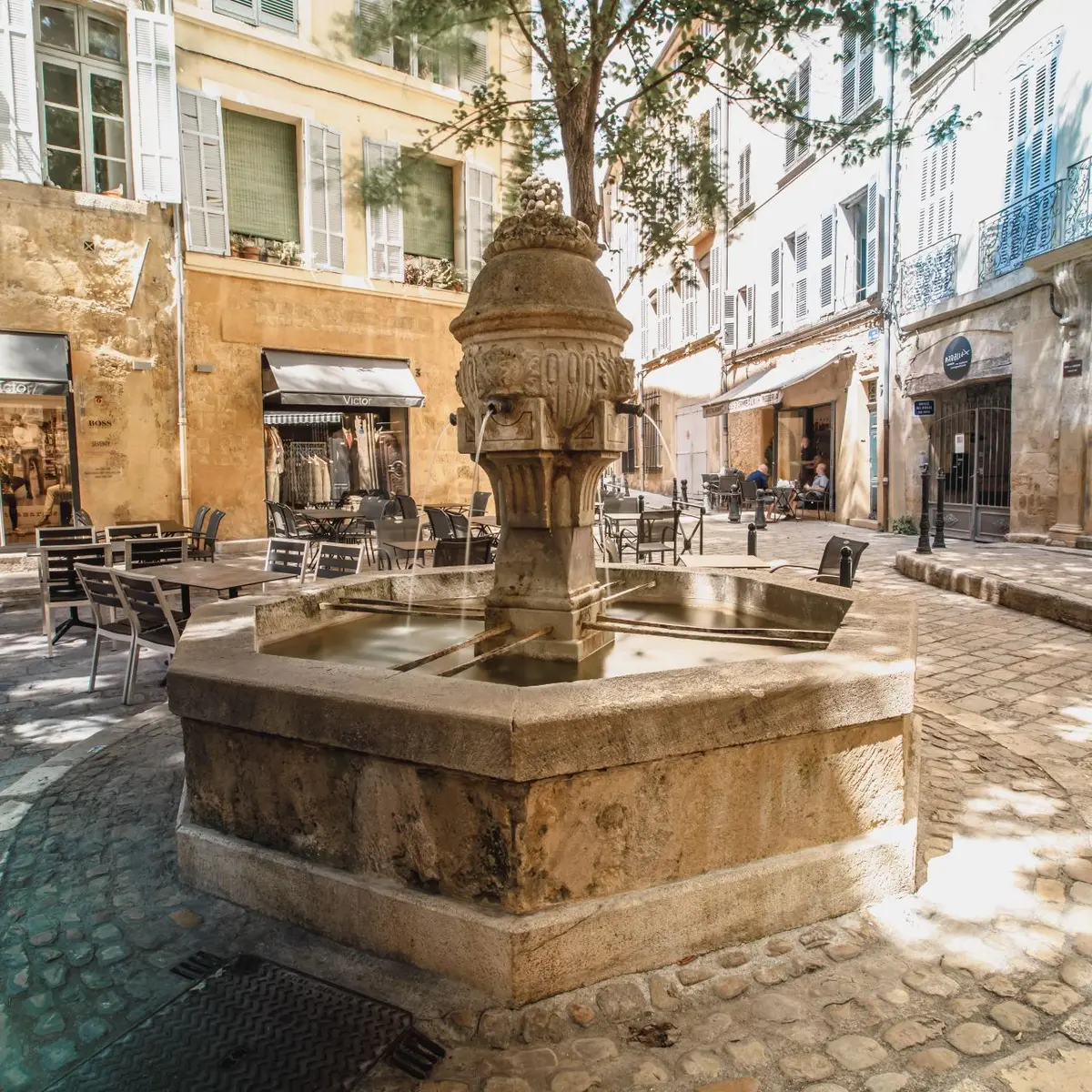 Un puit était installé en son centre. Il a été remplacé en 1632 par une charmante fontaine en pierre de Calissanne et de Bibemus comportant un bassin polygonal et un piédestal cylindrique avec décor floral.