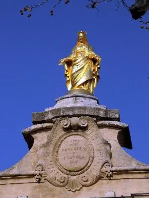 Date du XIV° siècle.Munie pour les besoins de défense, de créneaux et de barbacanes, elle tenait son nom de la chapelle St Jean Baptiste située dans son voisinage. La superbe Vierge dorée fut installée en 1866,avec l'inscription: "posuerunt me custodem", ce qui se traduit par "Ils (les tarasconnais) m'établirent leur gardienne". Depuis 1930 la porte est inscrite à l'inventaire supplémentaire des Monuments Historiques