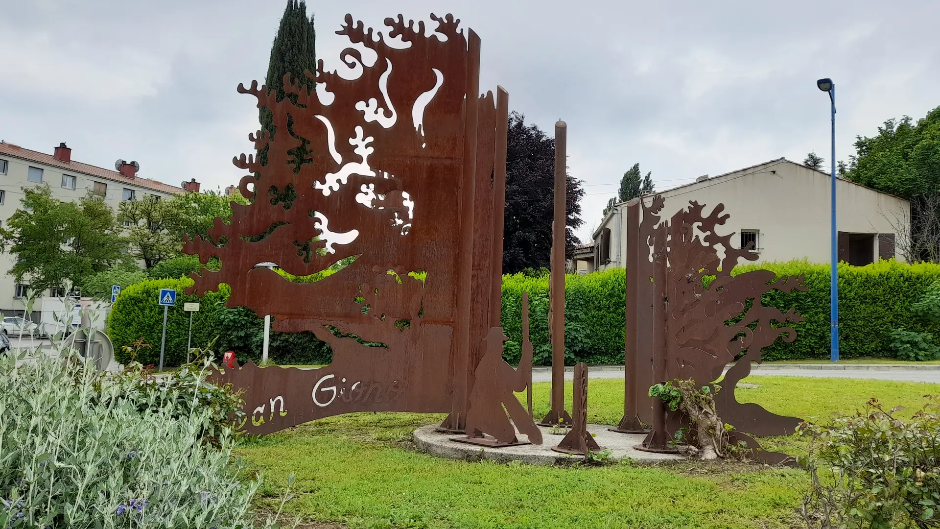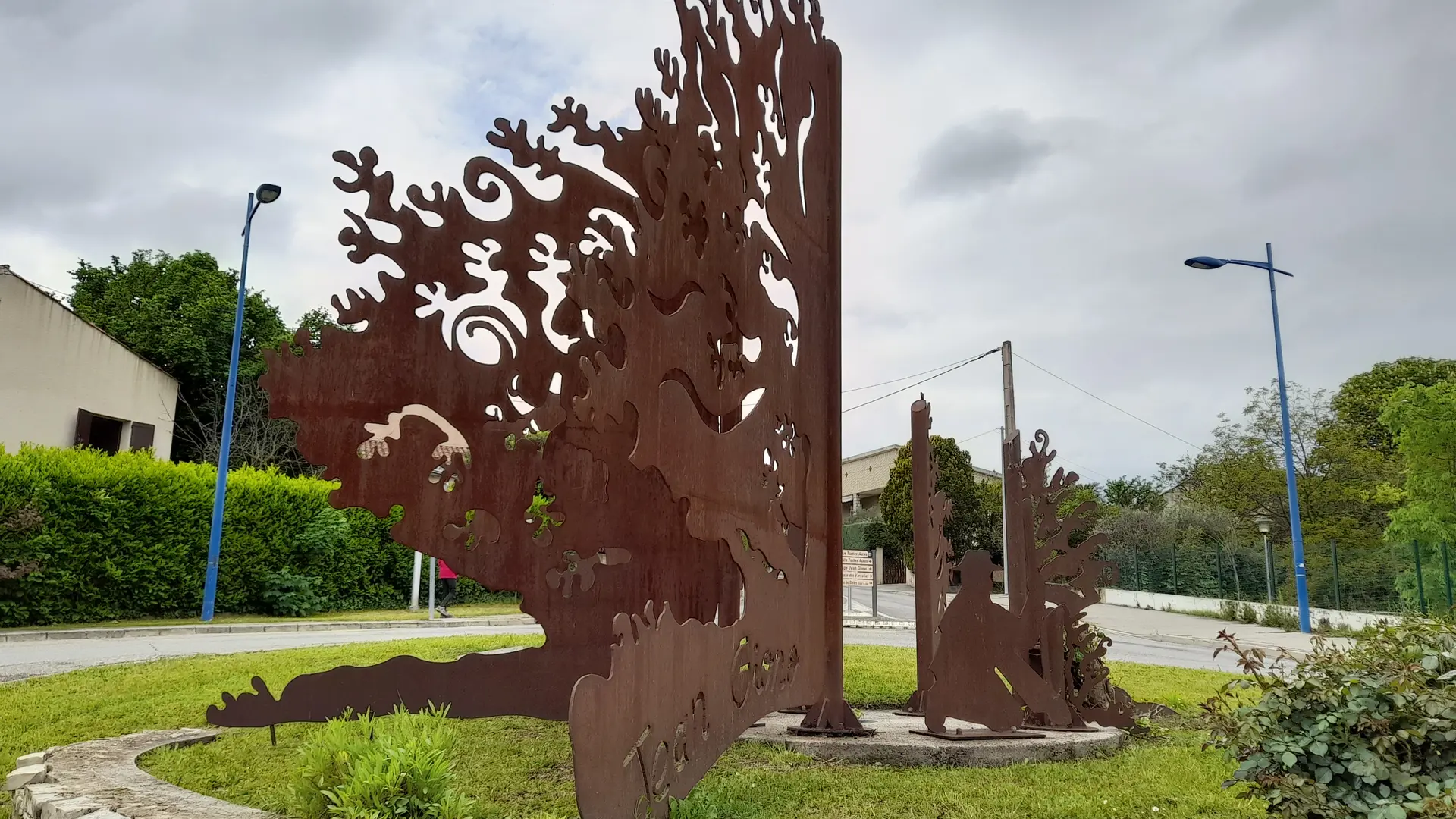 Sculpture en acier réalisée en 2016 par des élèves du lycée des Métiers Martin Bret d'après l'œuvre éponyme de Jean Giono.