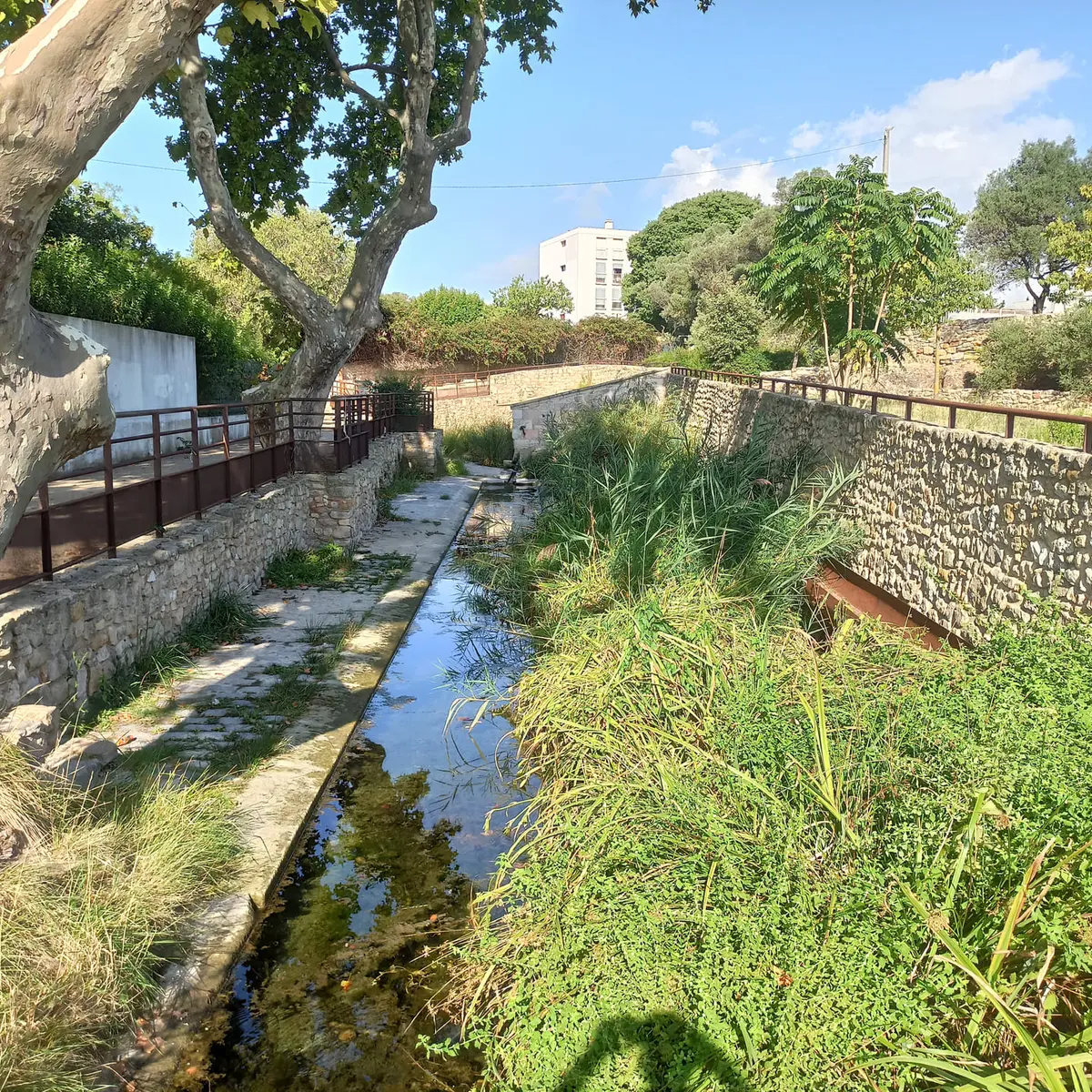 Dans la partie Sud du site, les fouilles ont remis au jour les vestiges d'un lavoir sous ses différentes facettes : façades, sols et toits en pierre de taille, calades de galets, tuyaux d'adduction en céramique ou en fonte, systèmes de pompage, galerie et citernes enterrées. L'ouvrage se compose de deux citernes voûtées, bâties côte à côté à l'emplacement d'une source d'eau douce coulant en abondance toute l'année.