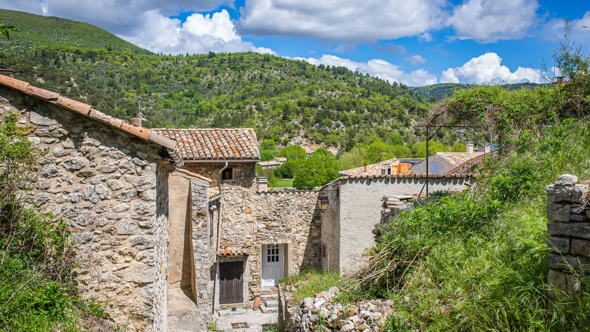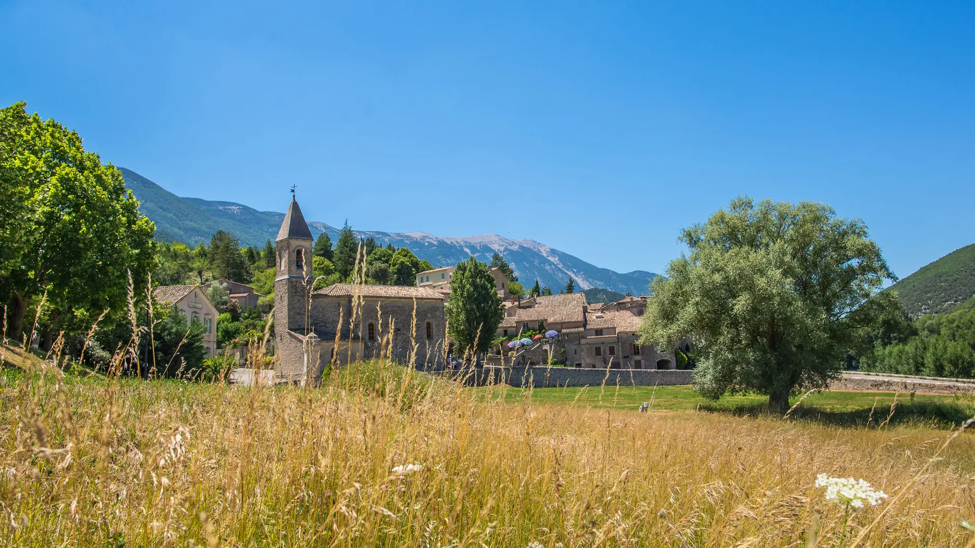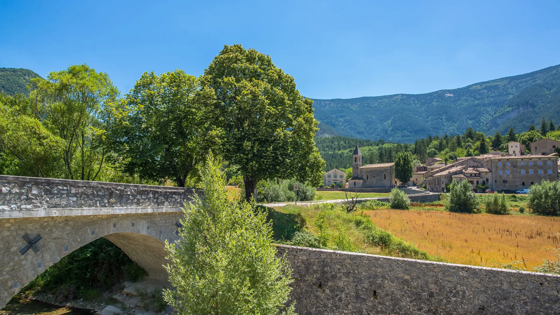 Après avoir traversé les montagnes verdoyantes le long de la rivière Toulourenc, vous emprunterez le pont de pierre qui permet d’accéder au village.
