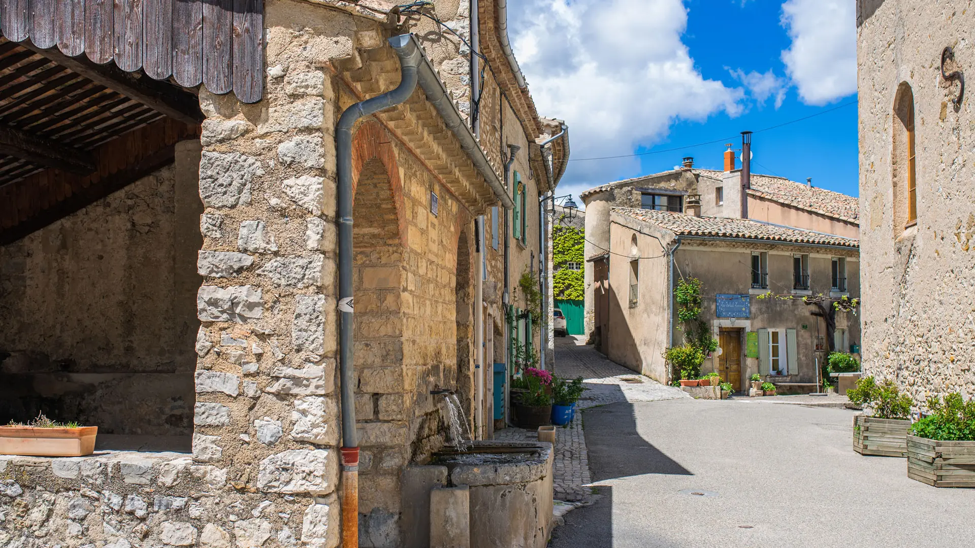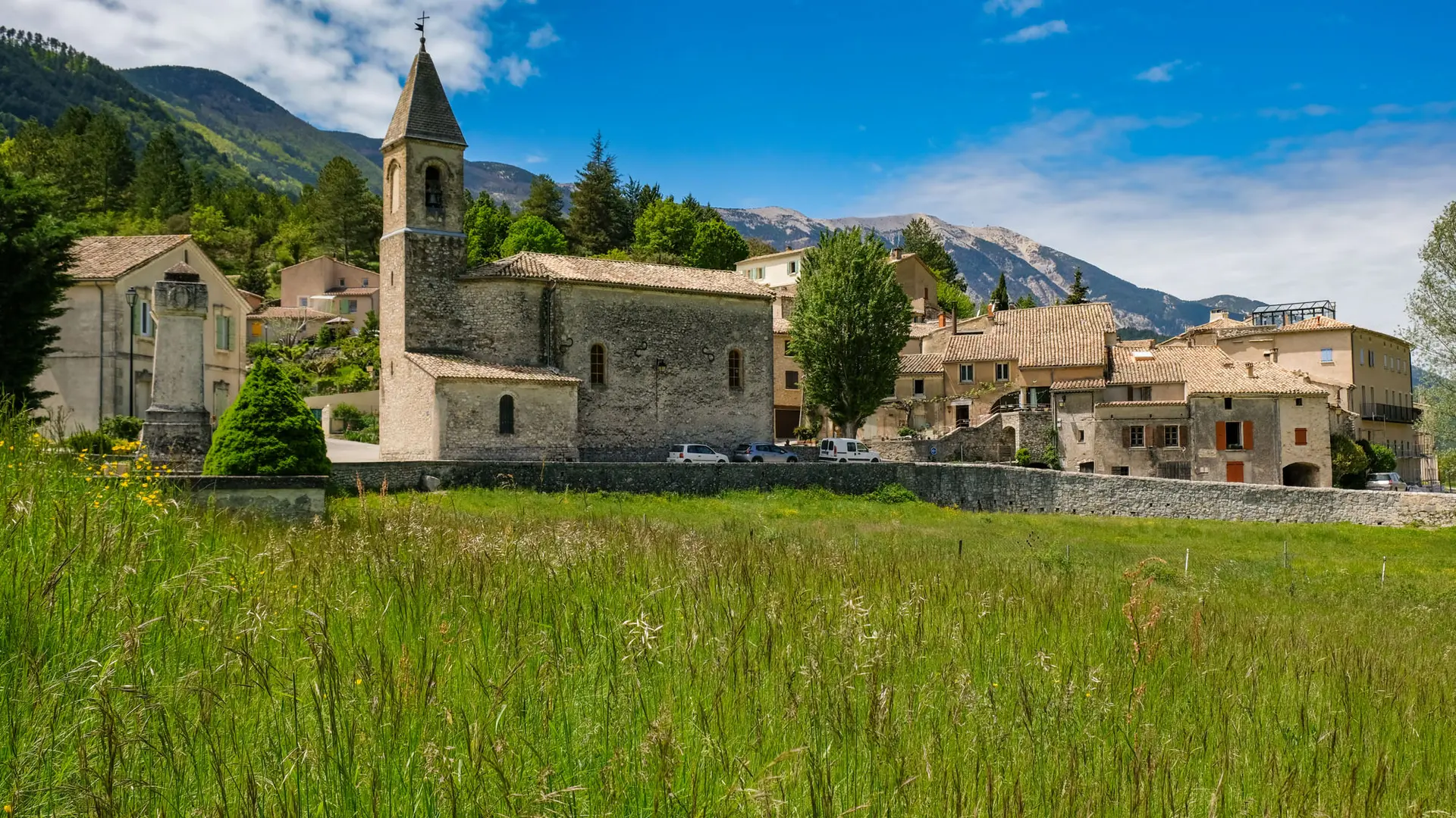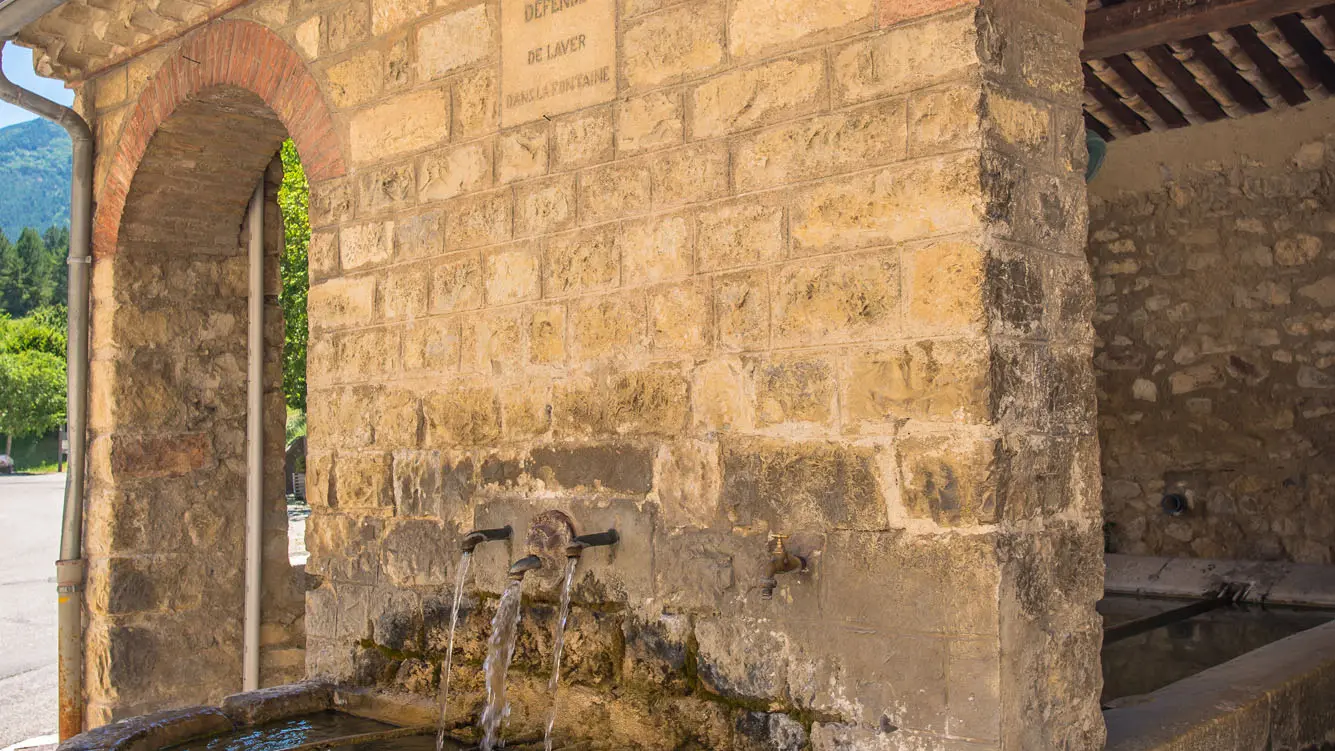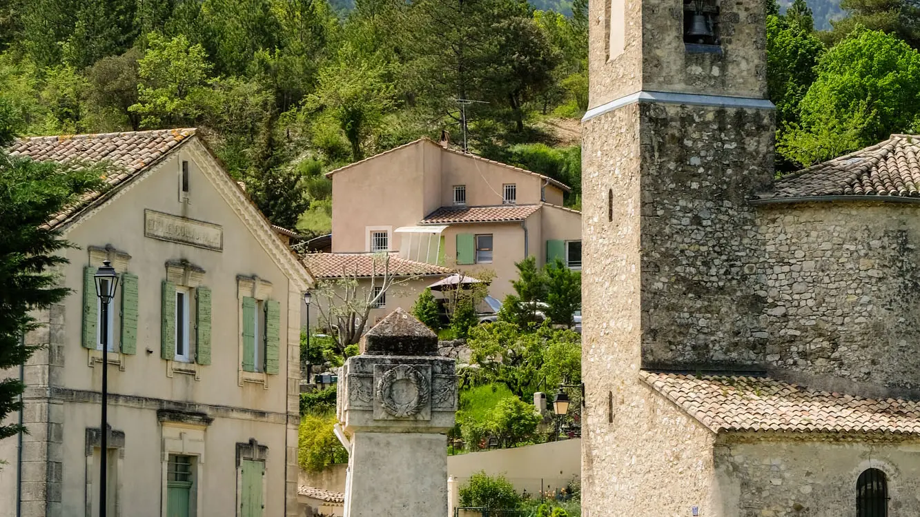 Vous apercevrez depuis la route, l’église Saint-Agricol datant de la fin du XIXe siècle. Avec son haut clocher pointu, elle contribue au charme du village, tout comme le beau lavoir en pierre alimenté par les sources du Mont Ventoux.