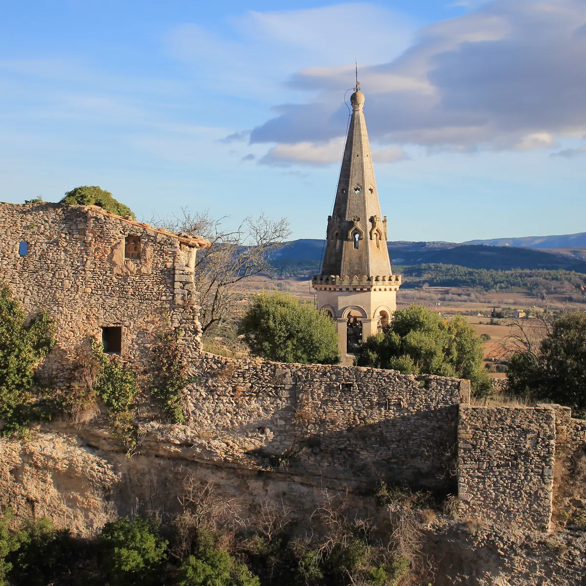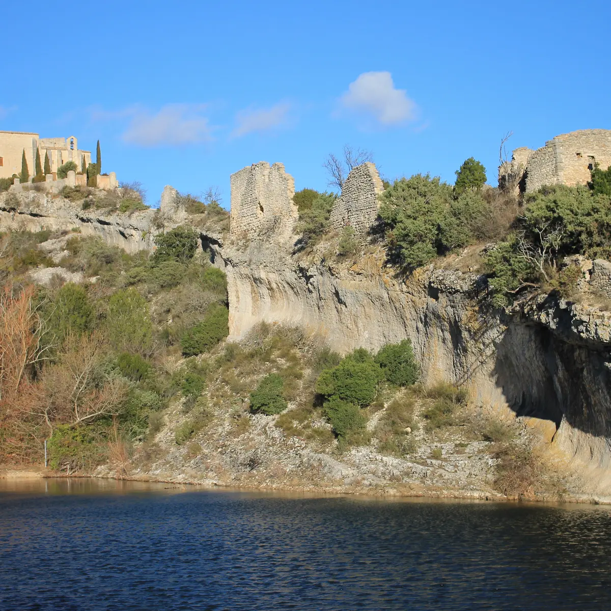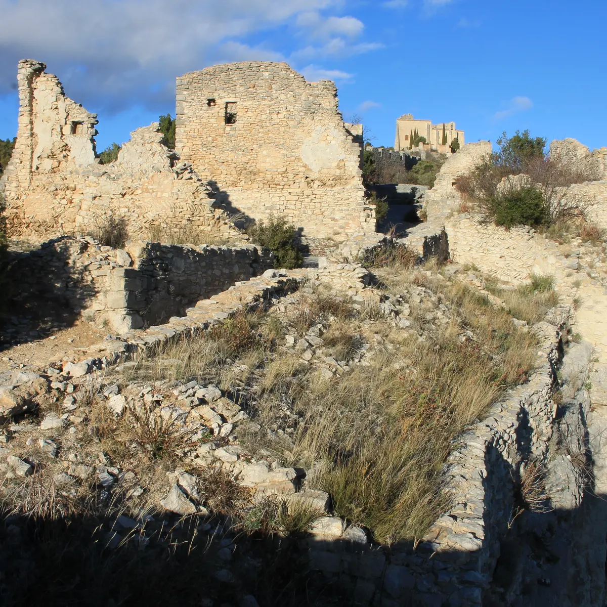 À gauche de l'église, un raidillon caladé guide vers les vestiges des Xe et XIe siècles, habitations, échoppes, ateliers, tous adossés au rocher. Après la porte de Viramont (XIIIe siècle), le chemin atteint la chapelle castrale, parfois nommée le "château".