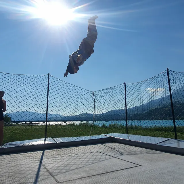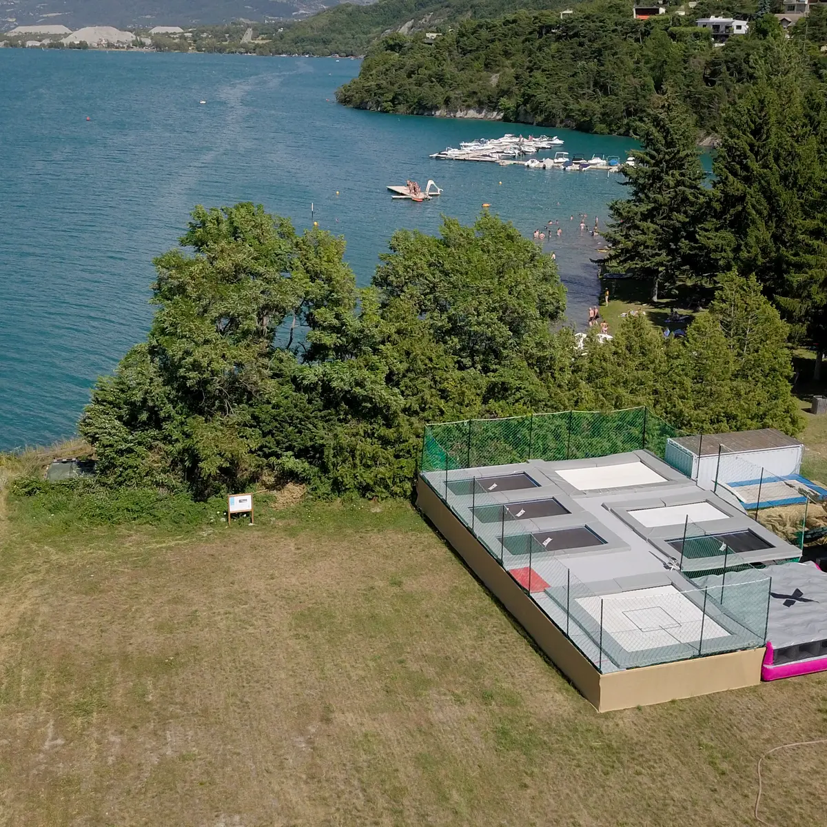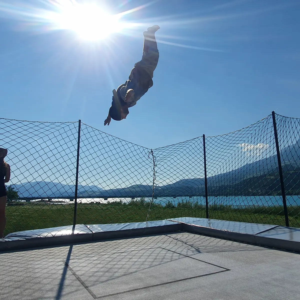 9TRAMP, c’est un parc d’environ 300m2. 8 trampolines haut de gamme (Acon, trampo olympique et super tramp) et 1 airbag vous attende pour une expérience inoubliable à quelques mètres du lac!
