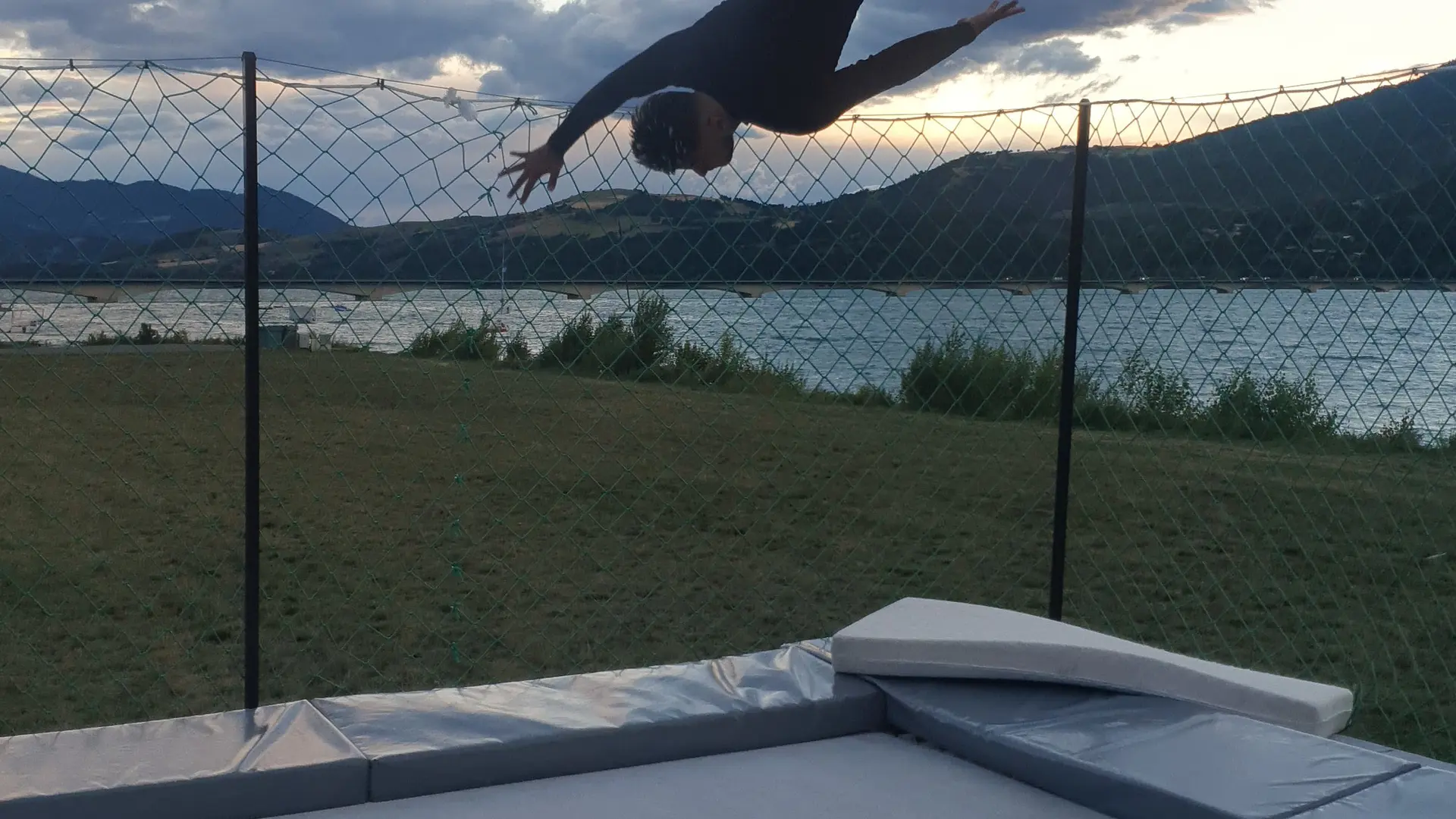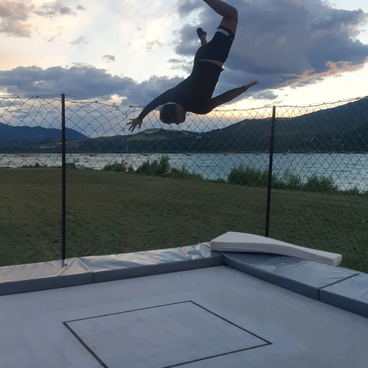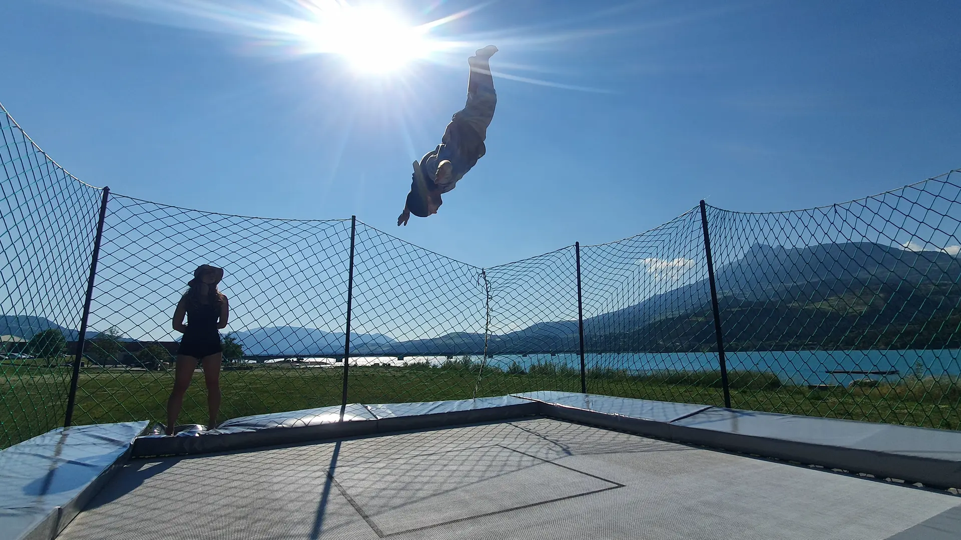 9TRAMP, c’est un parc d’environ 300m2. 8 trampolines haut de gamme (Acon, trampo olympique et super tramp) et 1 airbag vous attende pour une expérience inoubliable à quelques mètres du lac!