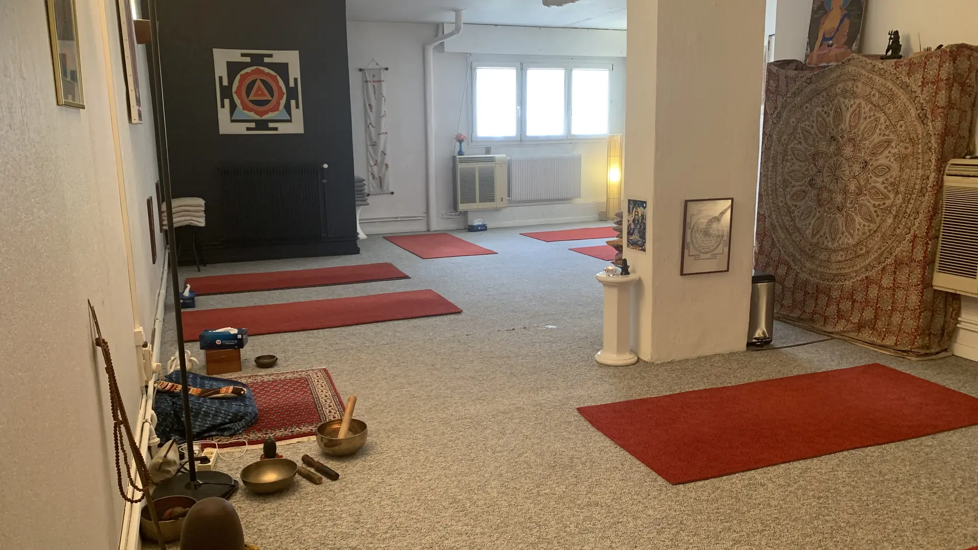 ➜ Hatha-Yoga traditionnel (tonique) et Yoga-Nidrâ (relaxation-méditation). Pranayama (souffles) et méditation.
