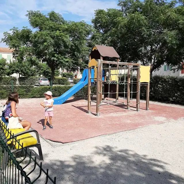 A proximité de l'Espace Intergénérationnel La Durance, les enfants pourront profiter de l'aire de jeux composée de jeux sur ressort, d'une structure en bois avec toboggan.