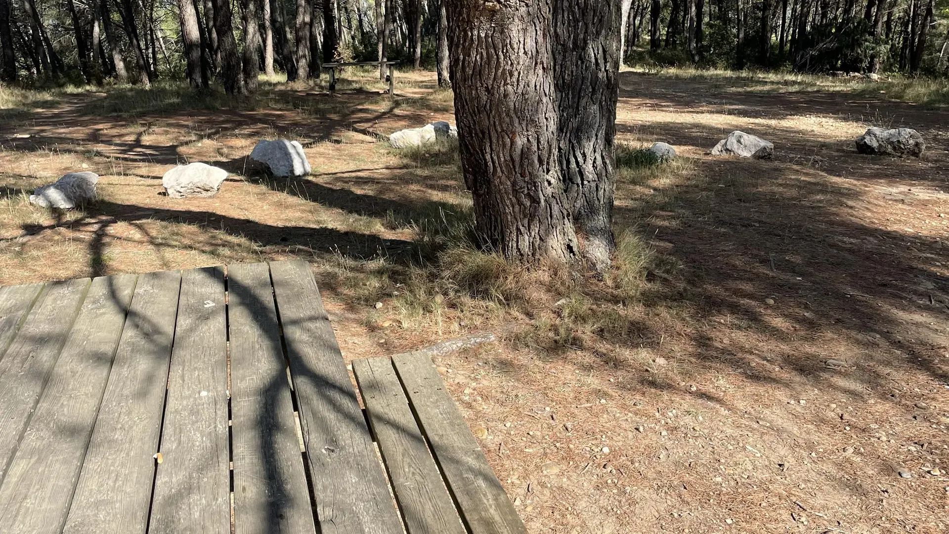 Quelques tables en bois avec des bancs vous attendent pour un pique-nique dans la nature.
