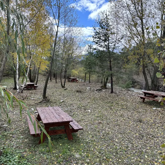 Aire de pique-nique disposant de quatre grandes tables idéalement située au bord du verdon à l'ombre des arbres. Vous pourrez rejoindre Colmars en 10 minutes à pied.