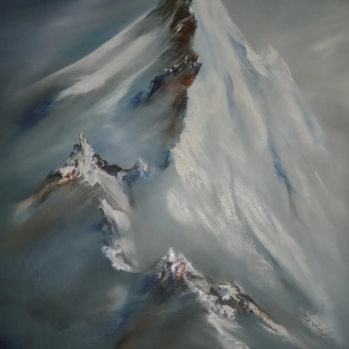 Pinceaux et couteaux viennent faire chanter sur la toile les bleus grisés des sommets enneigés, l'auréoline des ambiances marocaines, l'alizarine des automnes québécois...