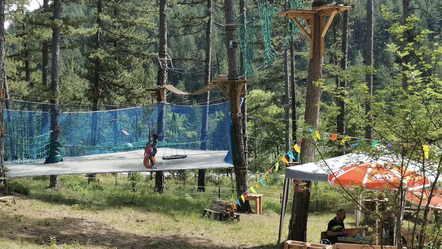 - Plusieurs parcours acrobatiques en hauteur de différents niveaux pour enfants et adultes, dès 3 ans.
