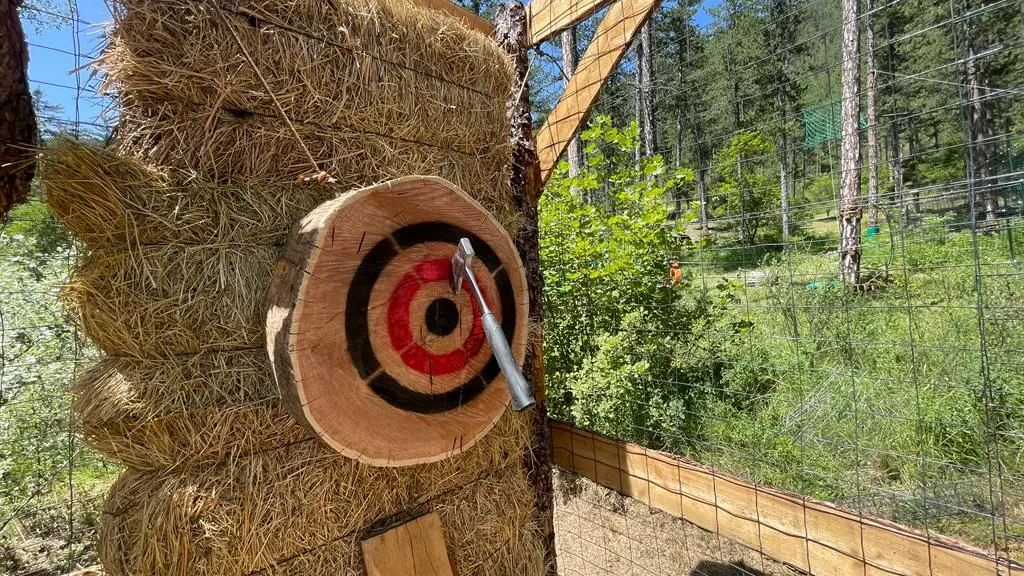 - Le lancer de haches est une activité ludique inspirée des compétitions de bûcherons nord-américains. Les participants lancent des haches sur une cible en bois, visant des zones spécifiques pour marquer des points, un peu comme au jeu de fléchettes, mais avec plus de puissance. Dès 10 ans.