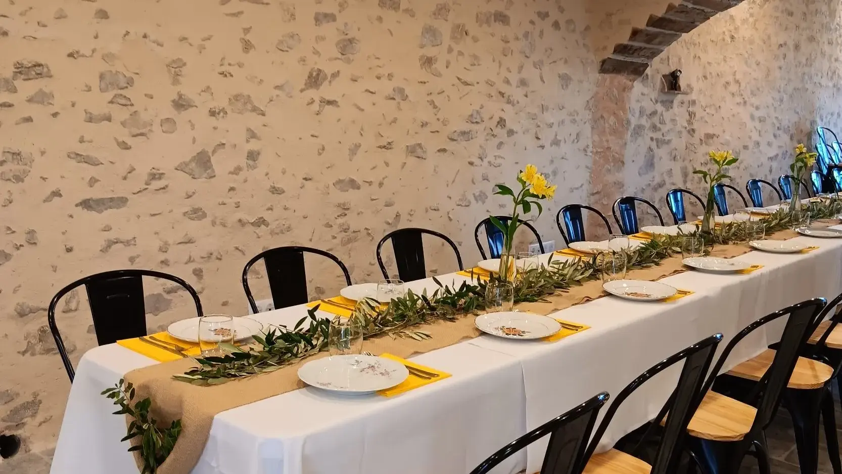 Equipée de tables pour 8 personnes chacune rondes et rectangulaires