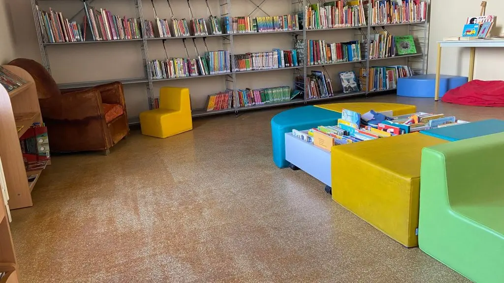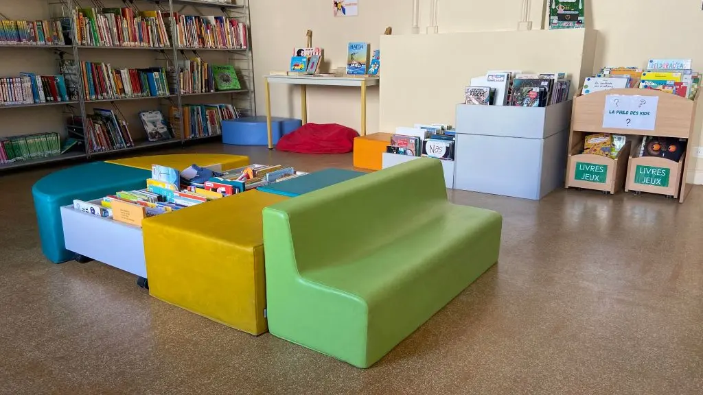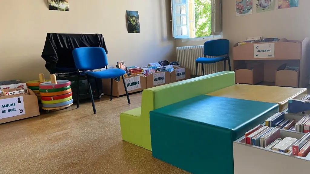 Des poufs colorés, de jolis bacs contenant des albums imagés, des contes … contribuent à rendre cet espace ludique et agréable. La Bibliothèque travaille en partenariat avec les écoles et la crèche de la commune.