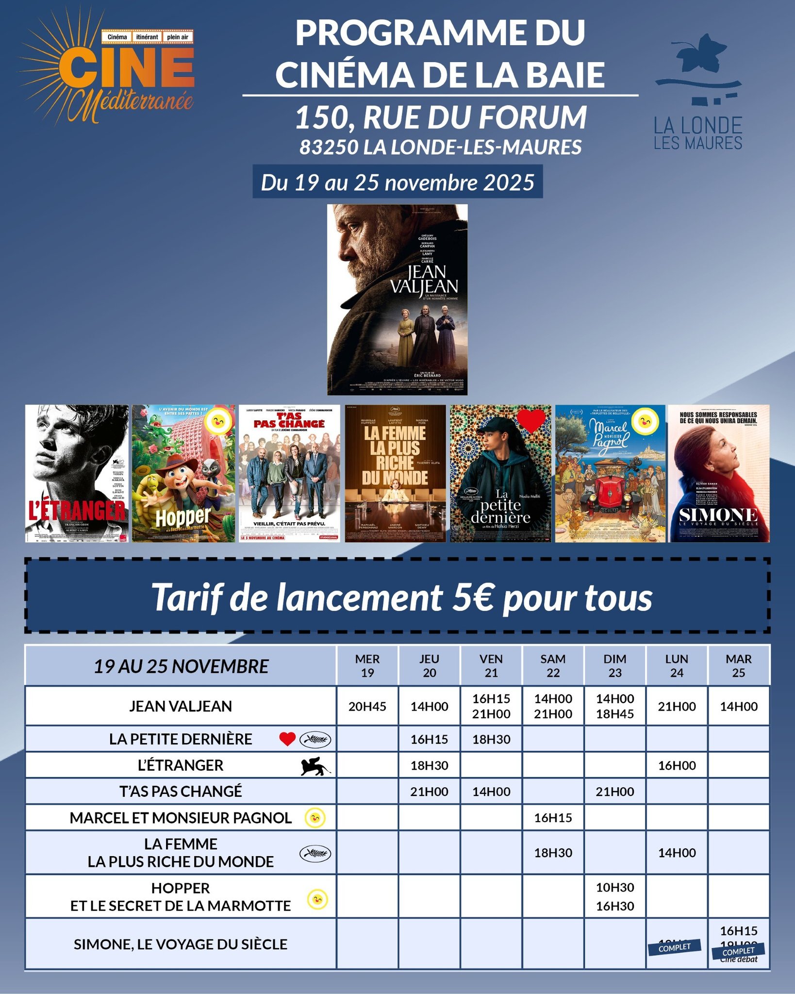 Le Cinéma de la Baie à La Londe-les-Maures vous accueille dans une salle moderne équipée en son Dolby Surround 7.1 et en projection laser, pour une qualité d’image et de son optimale.