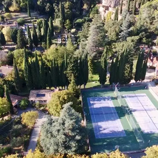 2 courts de tennis disponibles avec vue sur le parc et la cascade.
