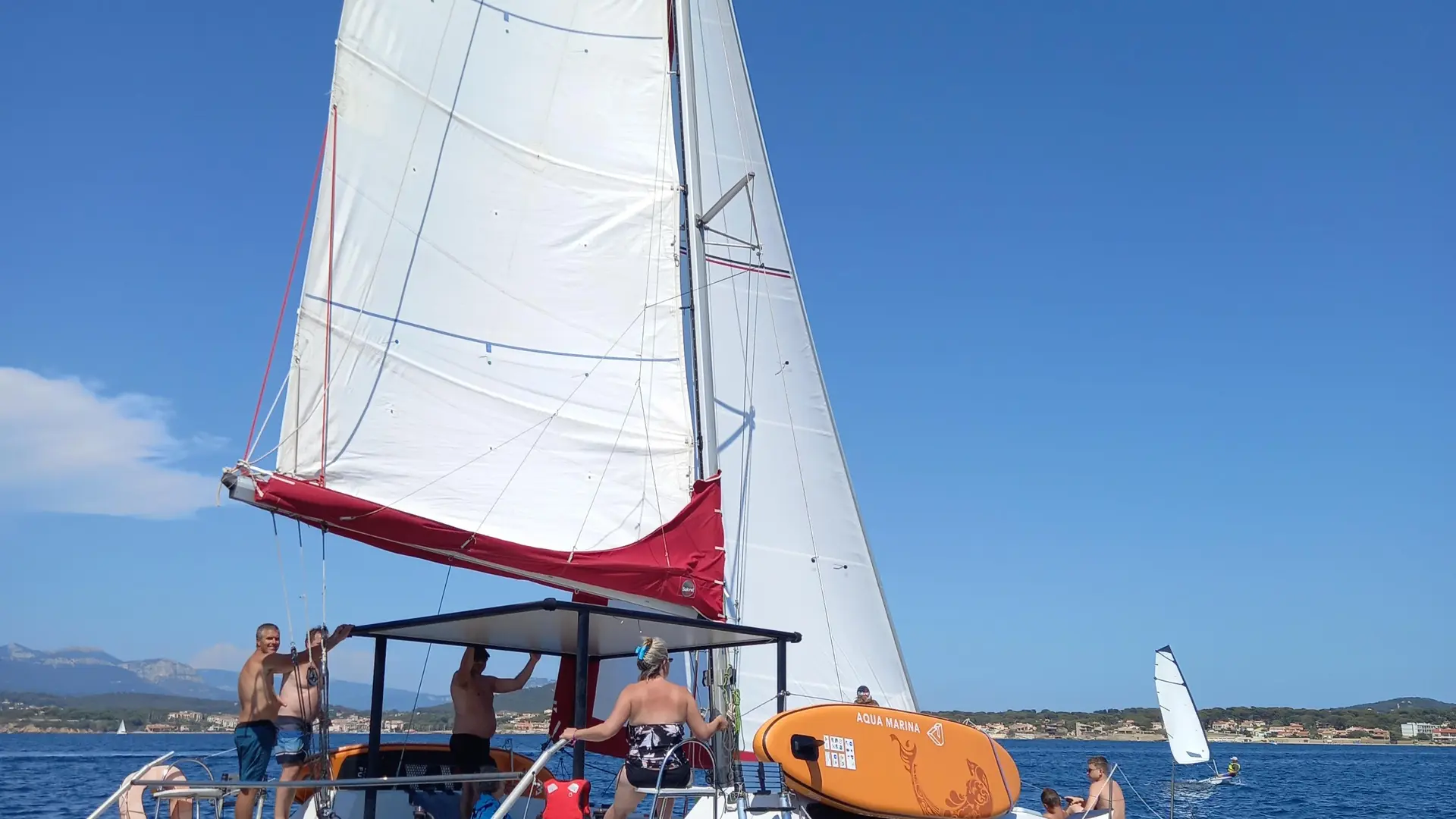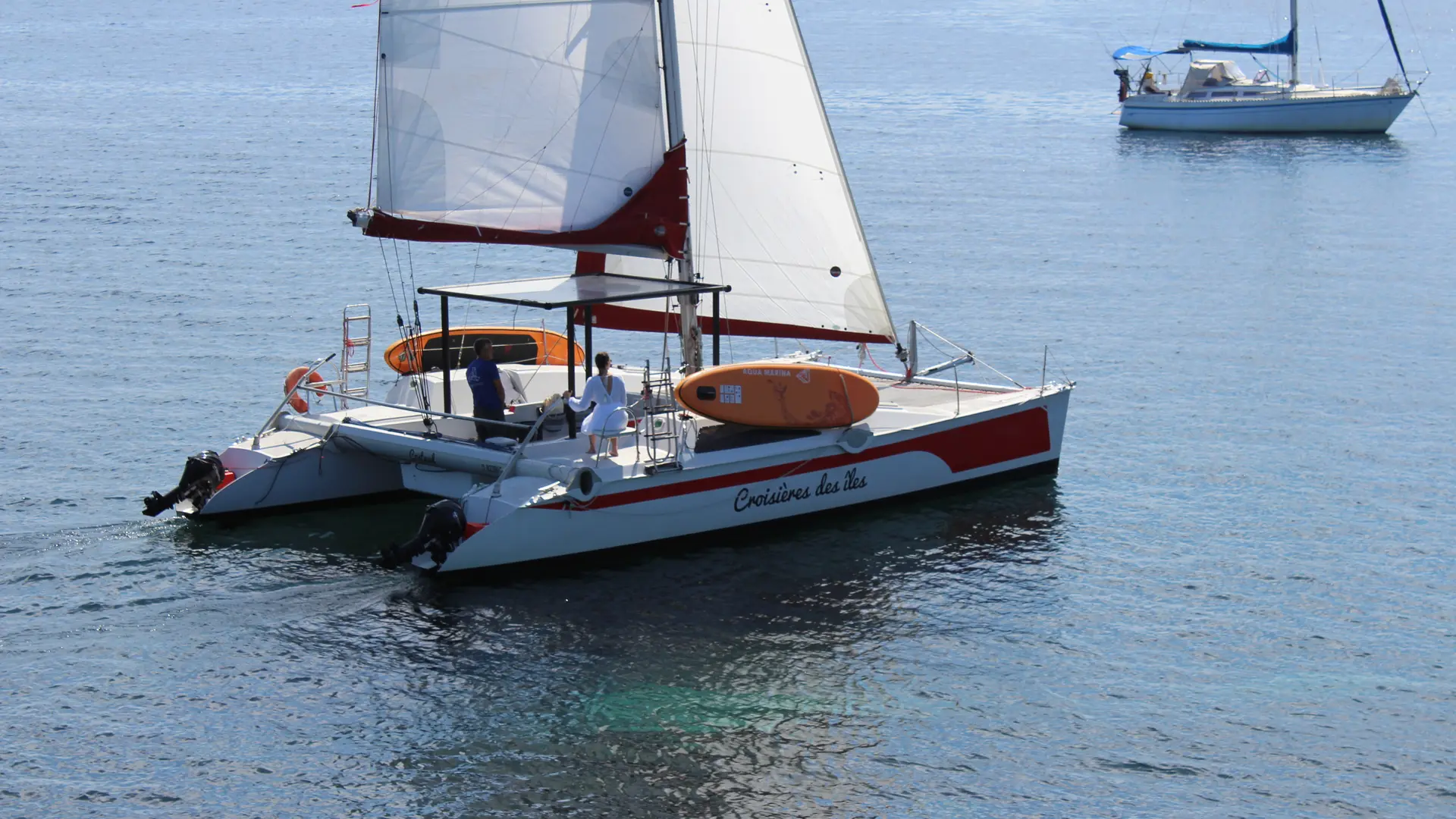 Activité douce, nos catamarans vous proposent une navigation à la voile au moindre souffle d'air, sans utilisation du moteur auxiliaire.