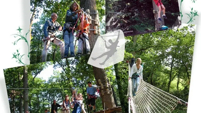 Un parc aventure à sensations avec tyroliennes, sauts de Tarzan, murs d'escalade, lianes, passerelles, saut de l'ange...