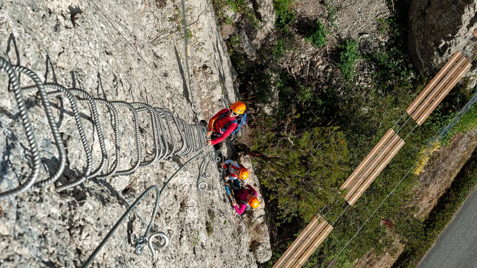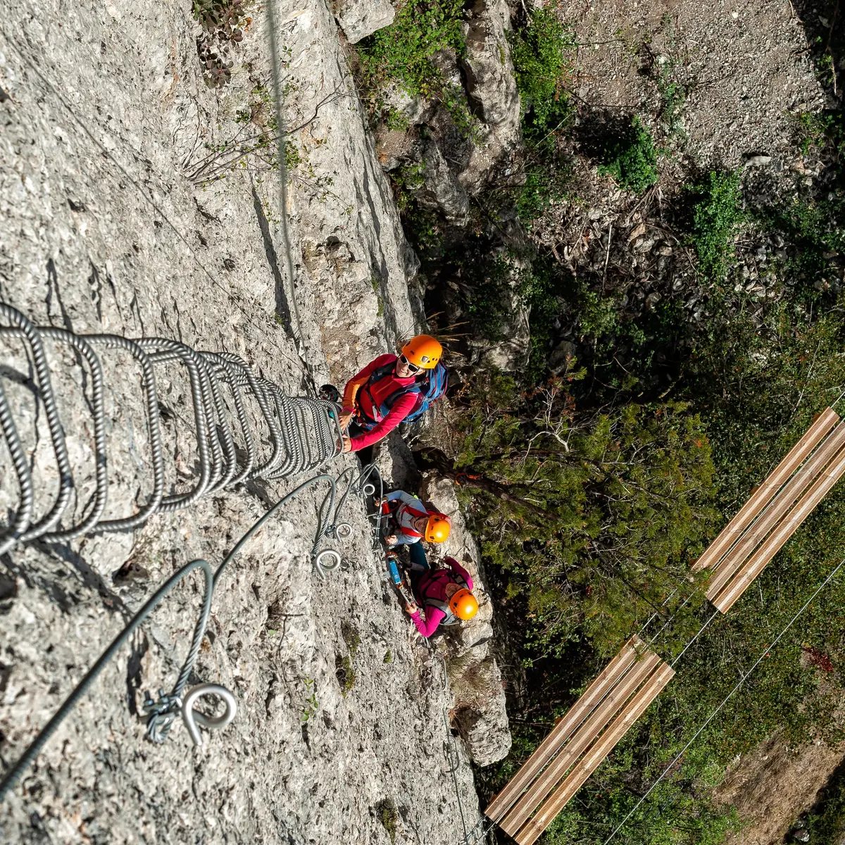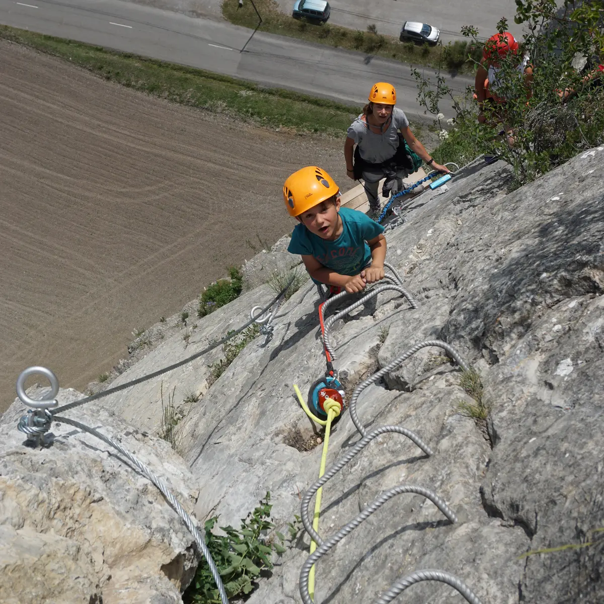 Ce parcours via ferrata est ouvert à tous, débutants, familles et enfants à partir de 7 ans et 1,30 m. Pendant deux heures, parcourez ponts et passerelles tout en étant totalement sécurisé (ligne de vie continue).