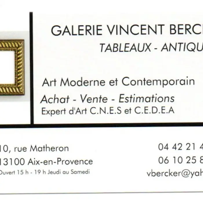 La Galerie Vincent Bercker est une galerie de tableaux et d'antiquités qui existe à Aix-en-Provence depuis plus de vingt ans. Elle est située dans le centre historique de la ville.