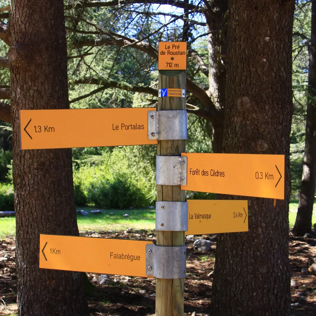Le sentier a été réalisé avec plus de 60 m3 de bois issu de la forêt des cèdres, exploité dans le cadre de la gestion de la forêt par l’ONF et transformé par des entreprises locales.