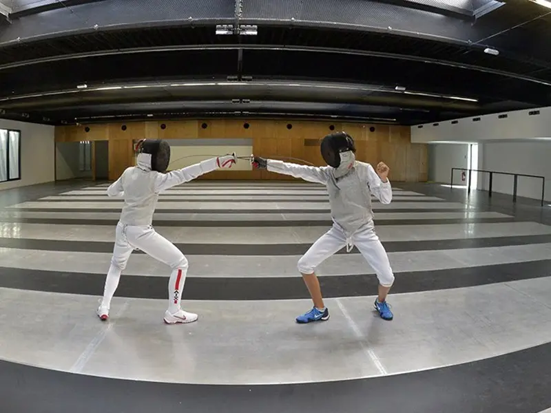 ➜ un espace escrime de 780 m2 équipé de 14 pistes, dont 12 homologuées avec un club résident : l'escrime du Pays d'Aix.