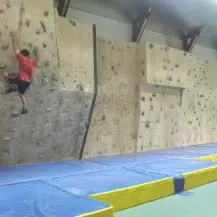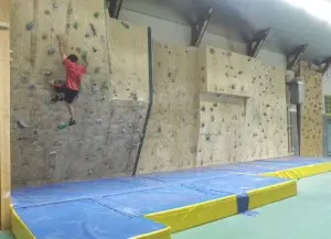 C’est aujourd’hui une salle de blocs de 4,10 m de haut avec 70 m² grimpable. Les chutes sont assurées par des tapis de 40 cm d’épaisseur et le pan est aux normes françaises.