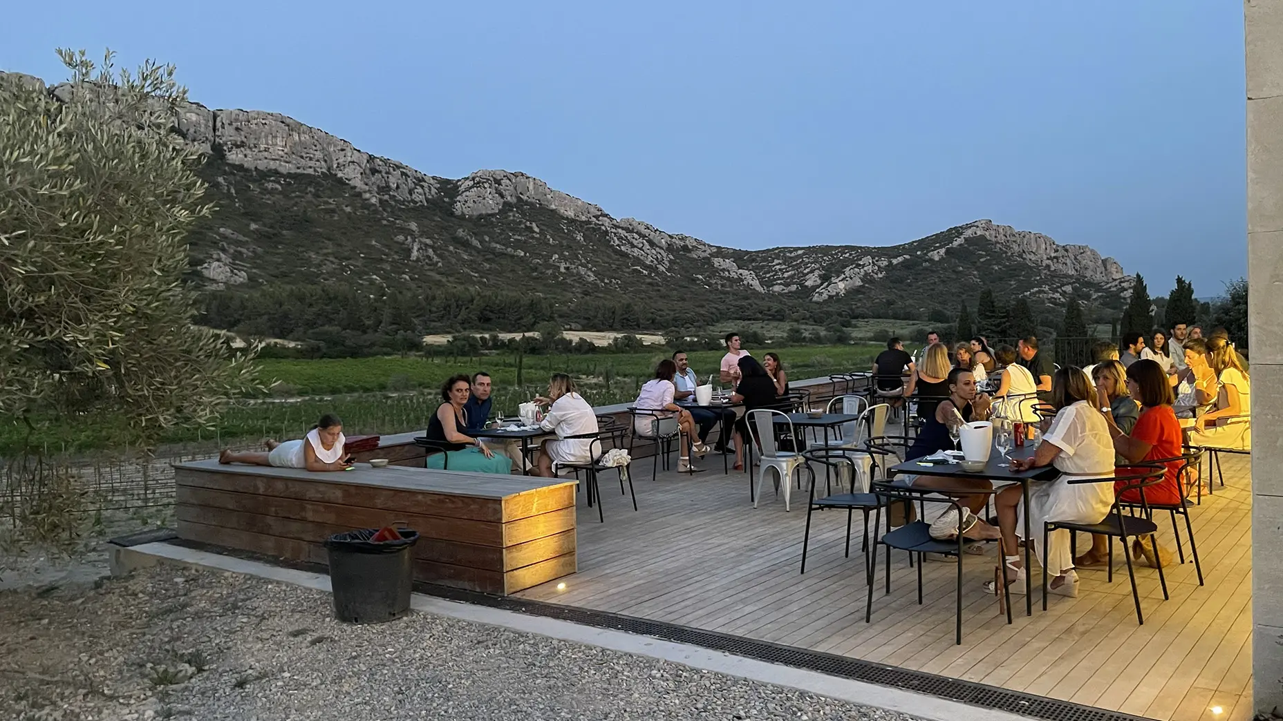 À partir du mois de mai, profitez de notre terrasse avec vue sur les Alpilles tout en dégustant nos vins avec une planche à partager! Vivez un vrai moment de détente et de convivialité.