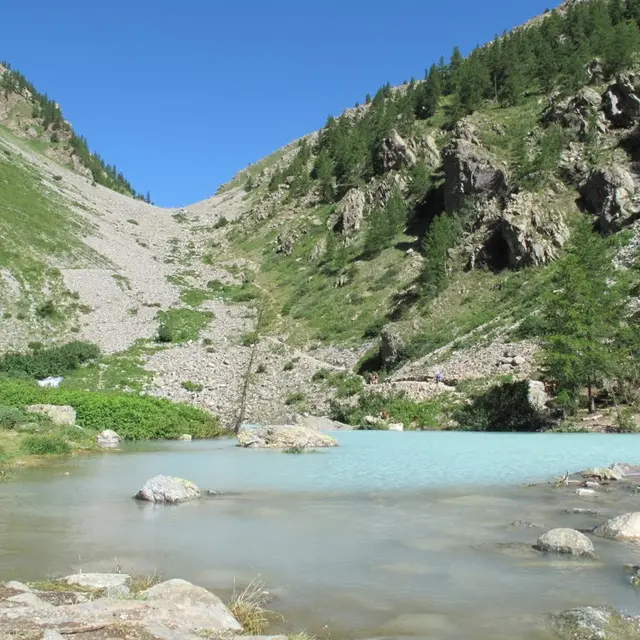 Continuer sur le chemin carrossable qui longe le torrent du Petit Tabuc, après un joli parcours en sous-bois (vue magnifique sur le Glacier du Casset), jusqu'au lac de la Douche.