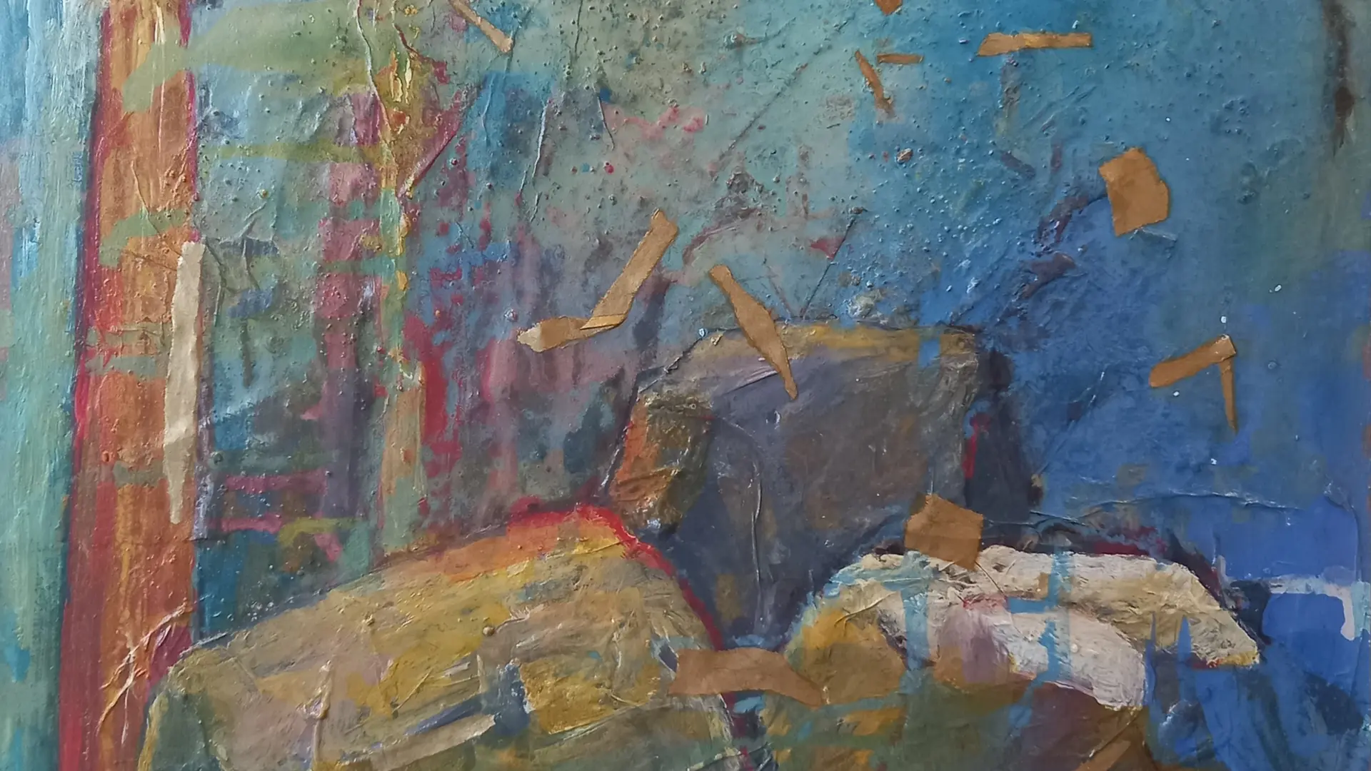 Les œuvres créées évoquent parfois les architectures de la ville (d’où est originaire l’artiste). Les pigments, acryliques et collages de papier sont la technique qu’elle emploie pour donner de la vie à la matière .
