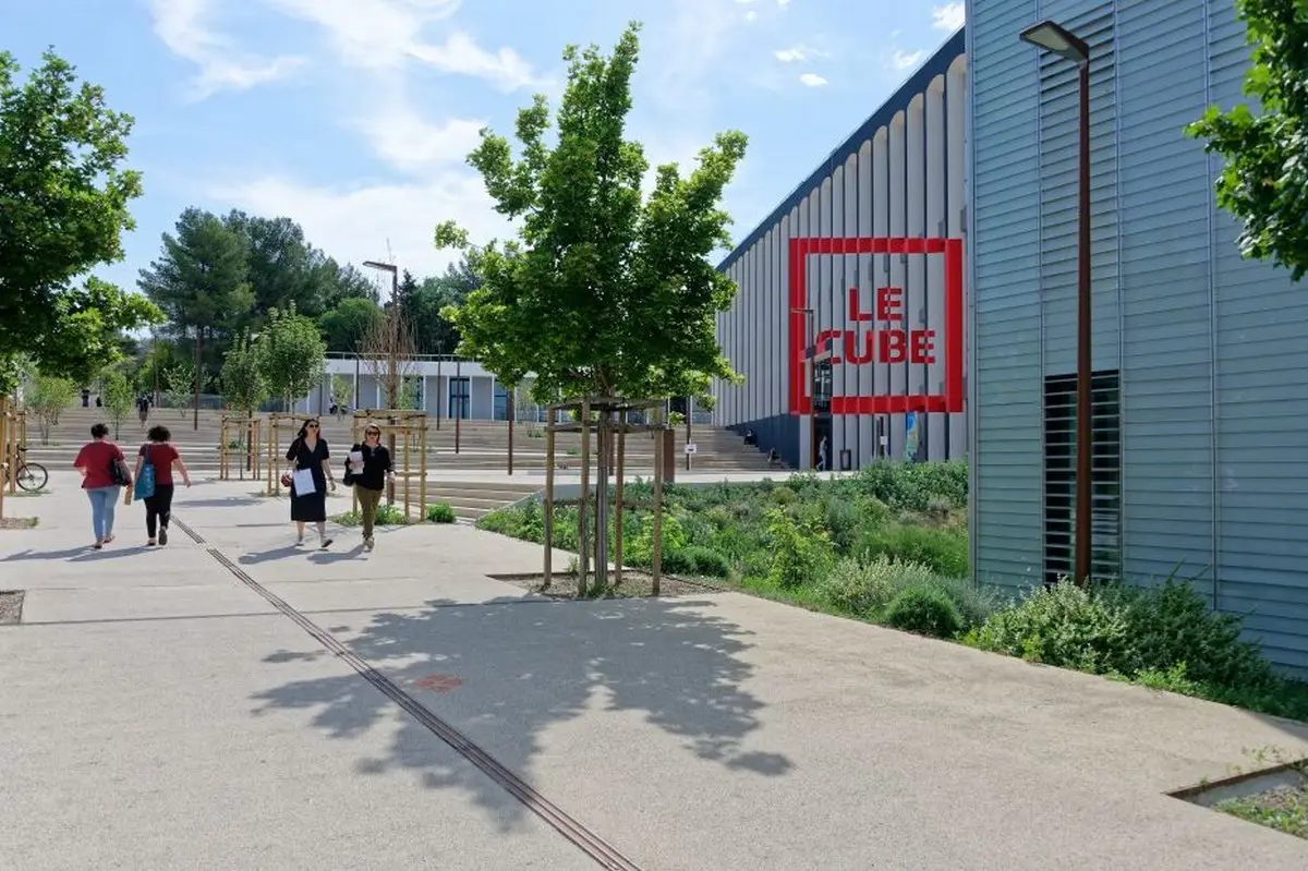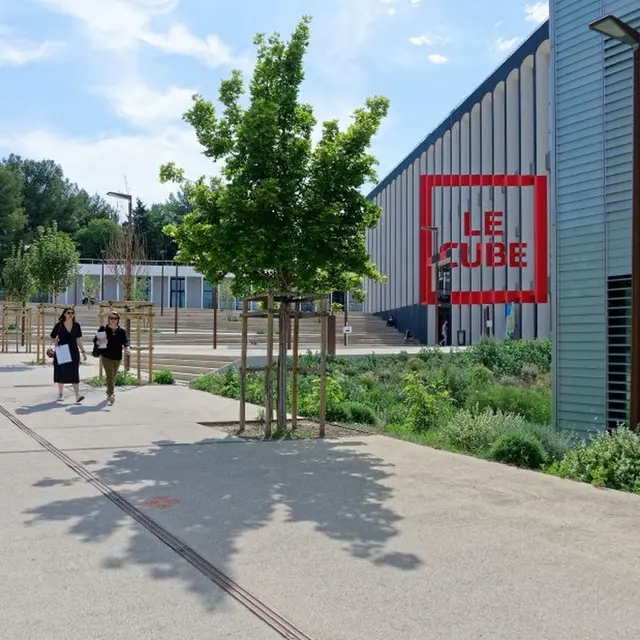 Construit en lieu et place de l’ancienne bibliothèque universitaire, le bâtiment du Cube a été conçu comme le point d’orgue de la rénovation du campus Schuman, au service d’Aix-Marseille Université et de sa communauté étudiante et enseignante.