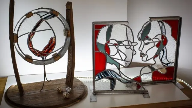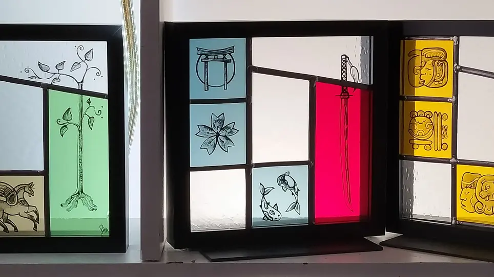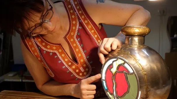 Dans son atelier, Betty Marquez vous présente ses vitraux : créations personnelles modernes, objets déco et réalisations traditionnelles.
