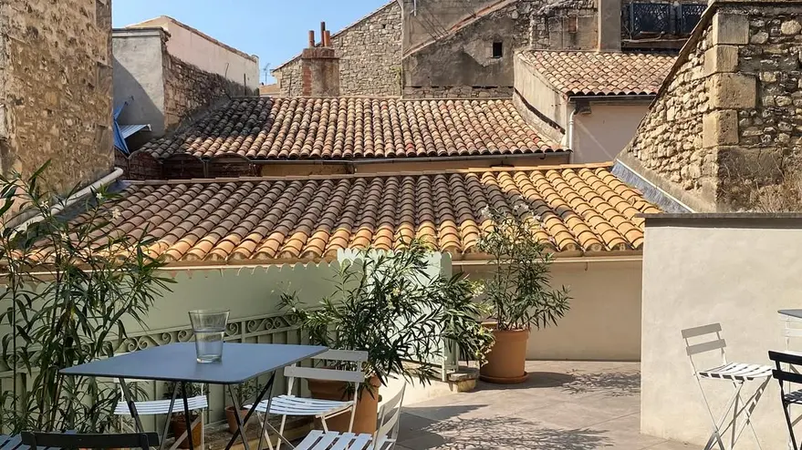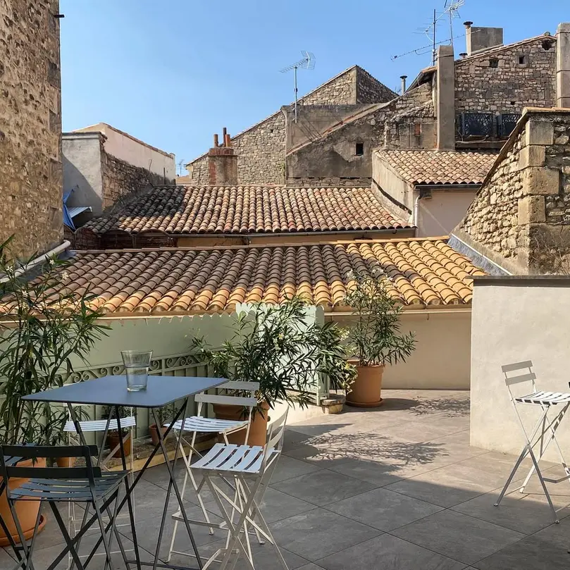 L’espace principal de 80 m², baigné de lumière naturelle, se distingue par son atmosphère chaleureuse et moderne, offrant un cadre parfait pour se réunir, travailler ou célébrer. Une cheminée fonctionnelle renforce l’ambiance accueillante de ce lieu. Prolongé par une terrasse privative en cœur d’îlot de 50 m², cet espace invite à la détente, avec pour toile de fond les toits de tuiles et les murs de pierre typiques d’Arles.