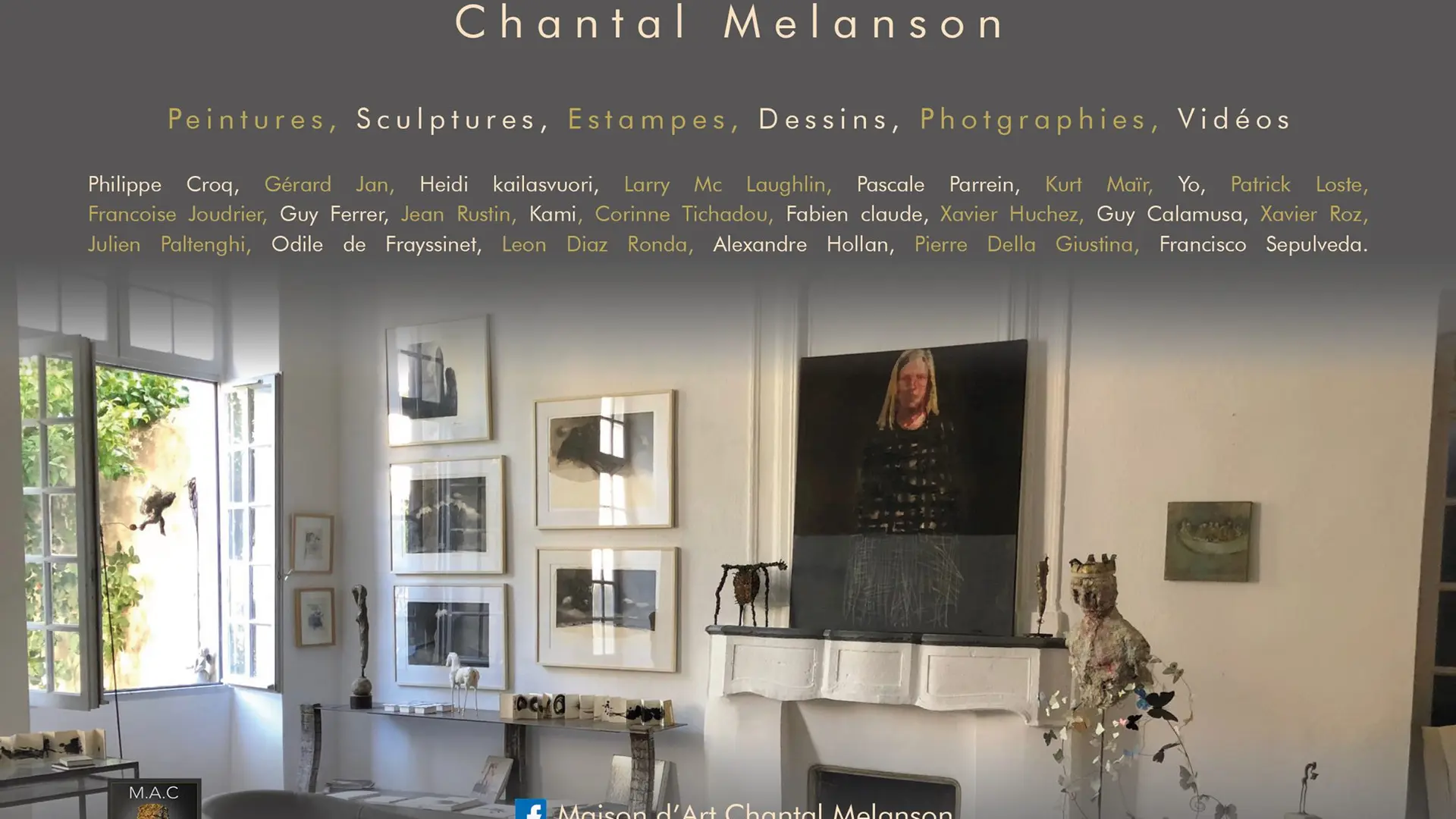 Chantal Melanson, galeriste en Art Contemporain depuis 1994, a exposé de nombreux artistes et sculpteurs internationaux. Elle s'évertue à mettre en valeurs les beautés architecturales en présentant de belles pièces d'art contemporain, toujours choisi avec soin et crée la "Galerie d'art Chantal Melanson", depuis la Maison d'Art Contemporain, un lieu privé dans un cadre hors du temps.