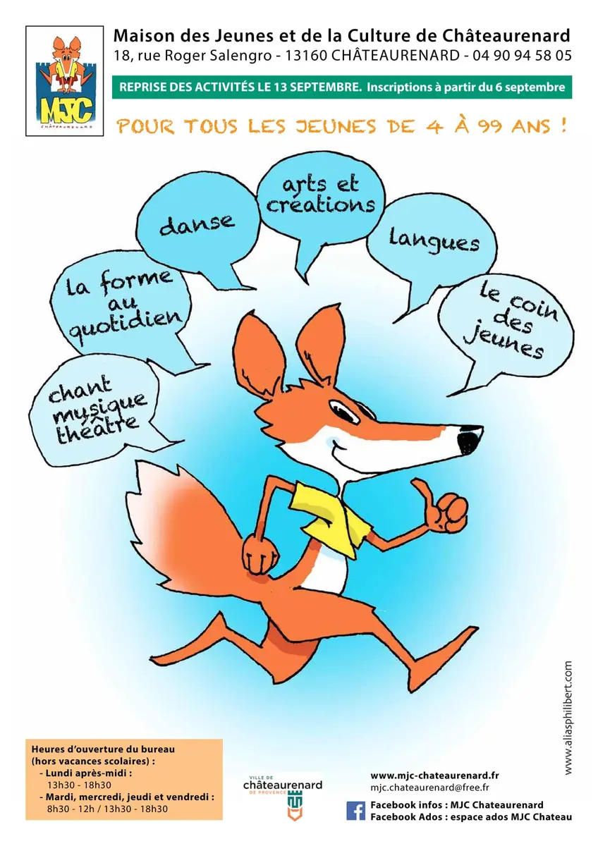 Yoga, internet, photo, théâtre, gym, couture, arts plastiques, peinture, Hip Hop, danse contemporaine, danse classique, danse africaine, chants, anglais, djembé, guitare, bridge.