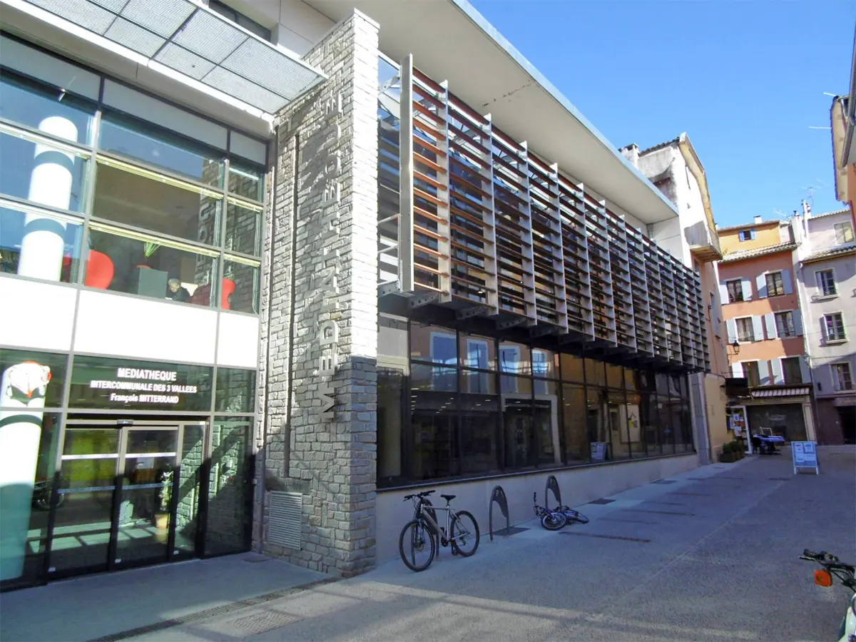 La médiathèque François Mitterrand propose un large choix de livres, revues, CD et DVD à emprunter ou consulter sur place, ainsi qu'une programmation culturelle régulière d'expositions, conférences et projections.